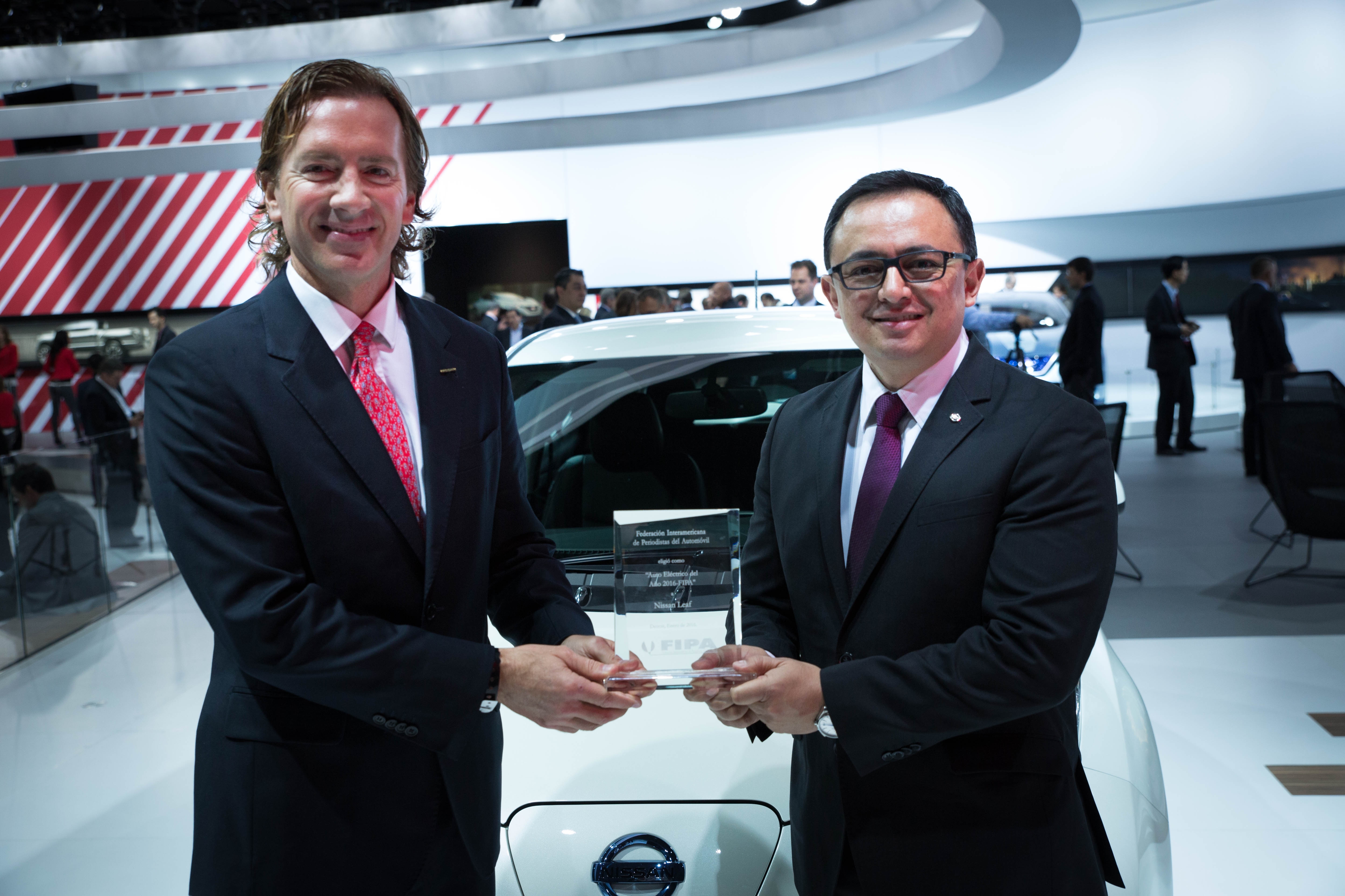 Nissan Leaf, el vehículo eléctrico más vendido en el mundo, fue elegido como el «Auto Eléctrico de 4 ruedas del Año 2016» por la Federación Interamericana de Periodistas de Automóvil (FIPA) en una ceremonia realizada en el marco del Salón Internacional del Automóvil de Norteamérica en Detroit.