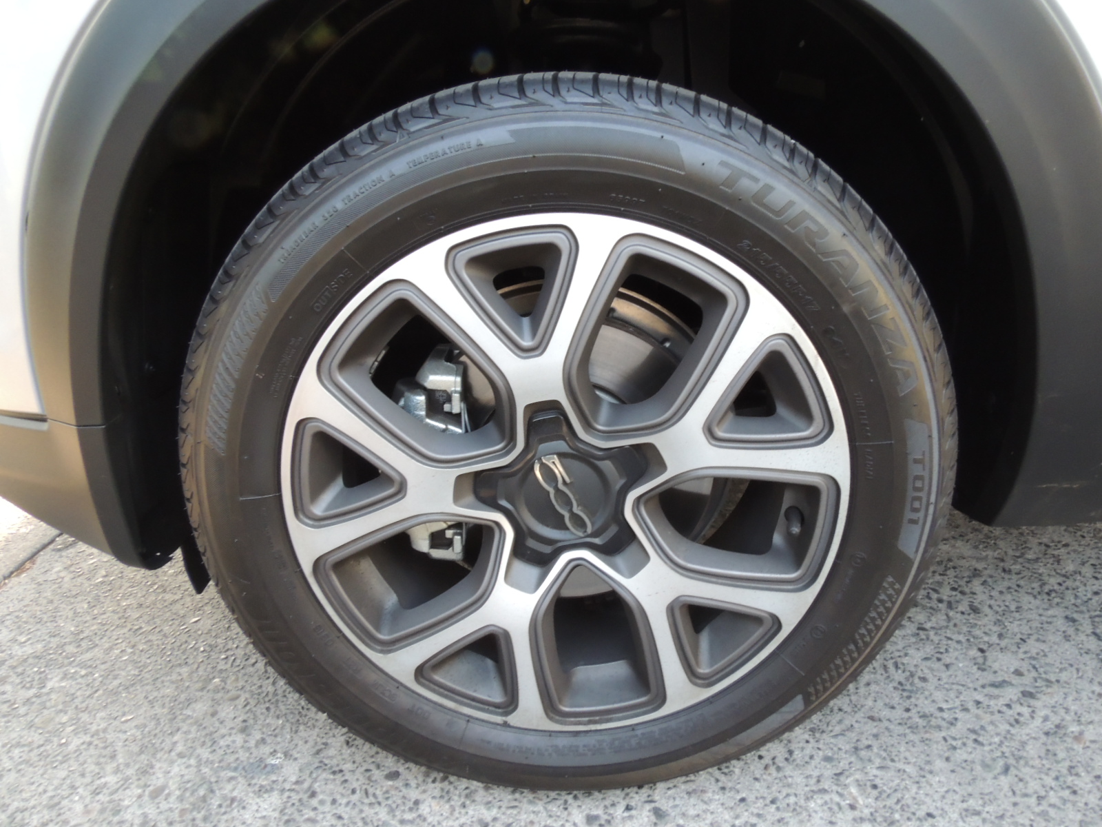 De perfil, el vehículo ofrece una línea de cintura ligeramente inclinada en la parte delantera que resalta la robustez y destaca el dinamismo del diseño. Concretamente: la sección del lateral presenta de forma actualizada el look del 500 histórico, pero con superficies más limpias y modernas, silueta suave, con parte alta trapezoidal y dinamismo hacia el frontal, y tiradores de las puertas cromados a juego con toques cromados delanteros y traseros, bajos elevados y ruedas aumentadas unidos a las mejoras de los ángulos de ataque y de salida, dando consistencia al carácter SUV, arcos de rueda y secciones de puerta más robustos que subrayan el alma fuerte del crossover y protecciones bajo las puertas y en los arcos de rueda para un SUV con personalidad. Dependiendo de la versión, monta neumáticos Bridgestone Turanza de medida 215/55 R17 ó 225/45 R18 (exclusivo del Cross AWD AT).