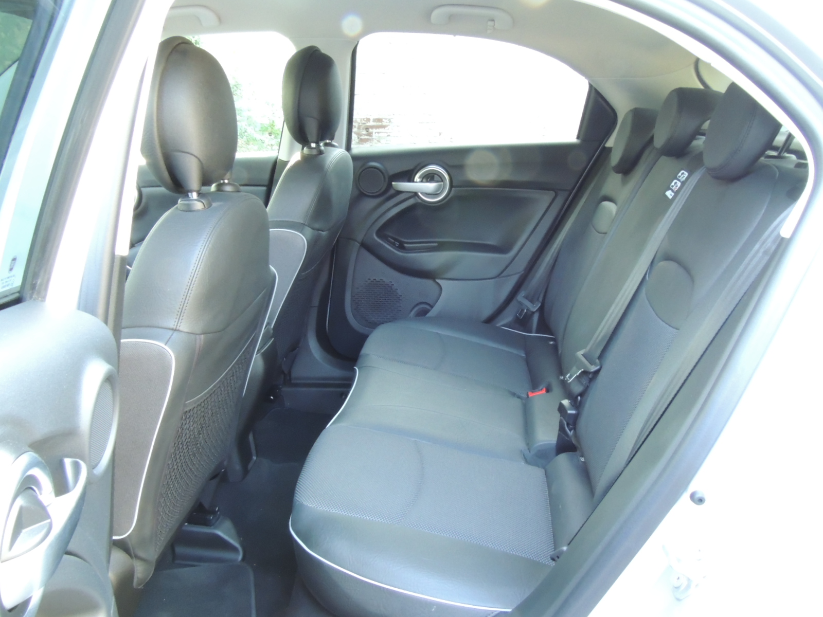 La zaga del Fiat 500X se caracteriza por una parte superior que se mantiene sobre el cuerpo principal, como en el clásico 500, luces traseras con anillo cromado, vidrios posterior redondeado y compacto y tirador del maletero cromado con logo.
