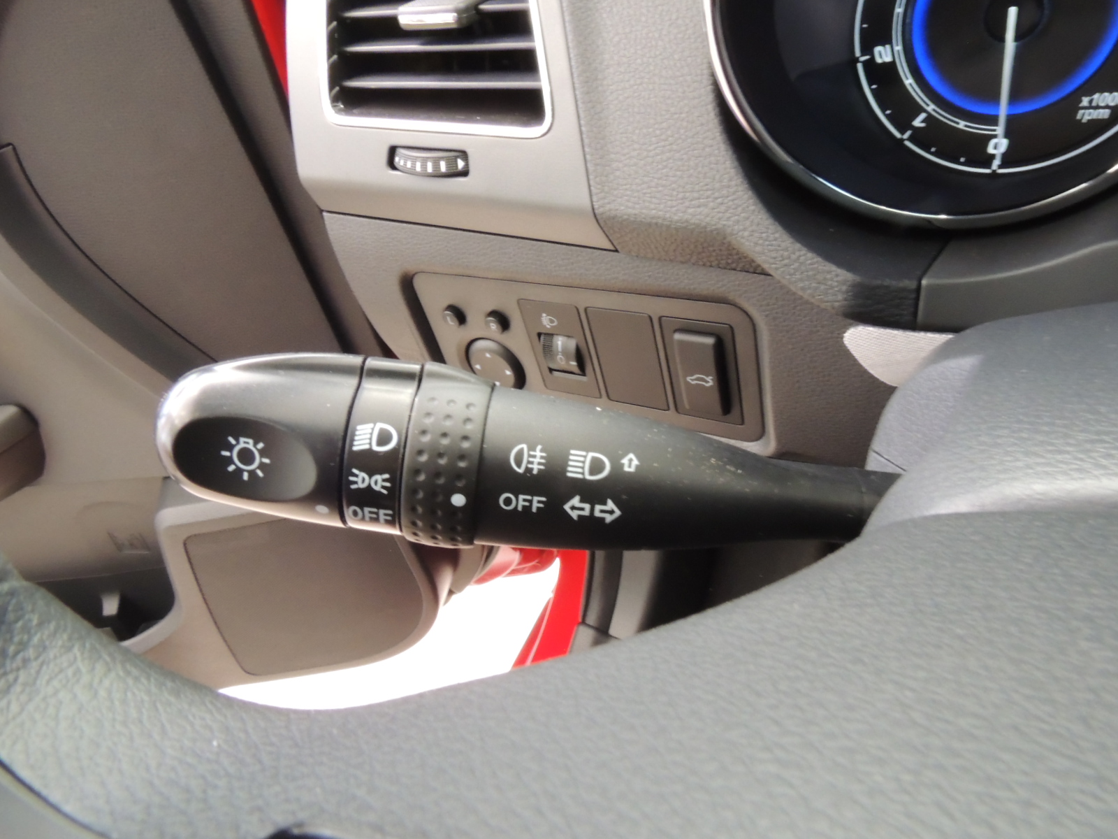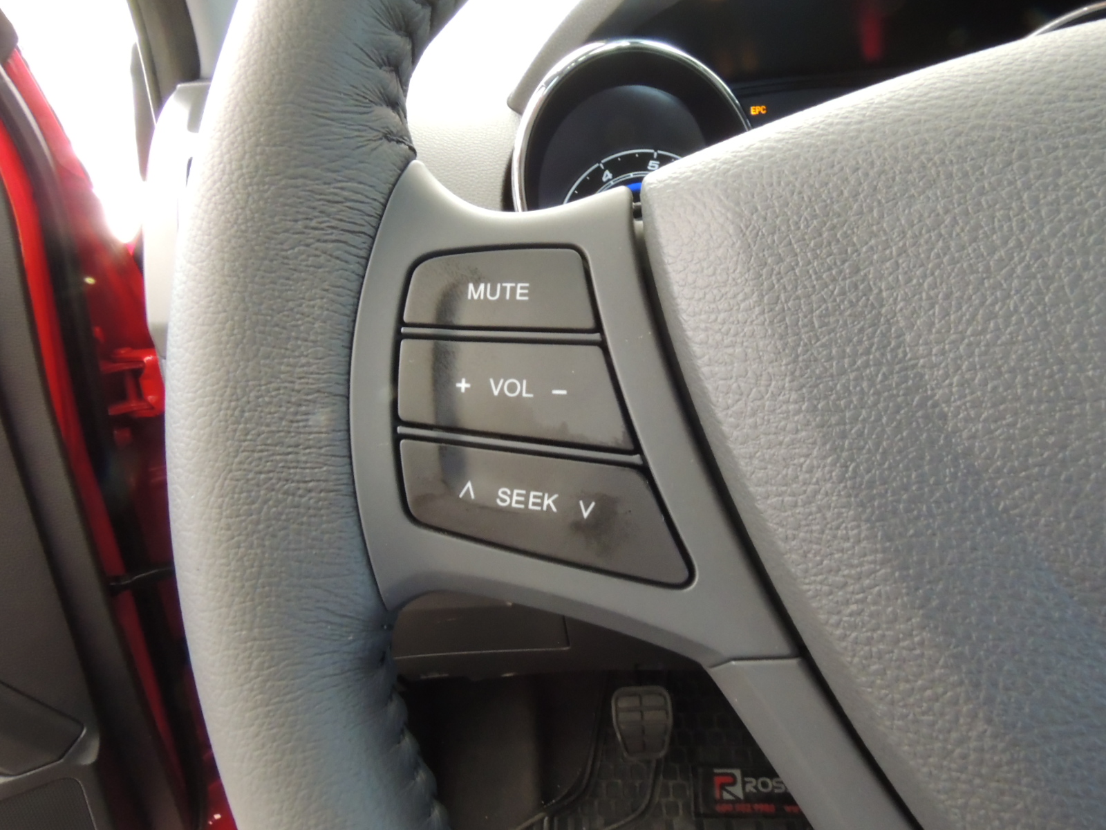 Sobre el computador se ubican los clásicos de advertencia.El volante de dos rayos dispone de comandos satelitales para el sistema de audio (se pueden buscar emisoras presintonizadas, regular volumen y elegir tipo de reproducción).
