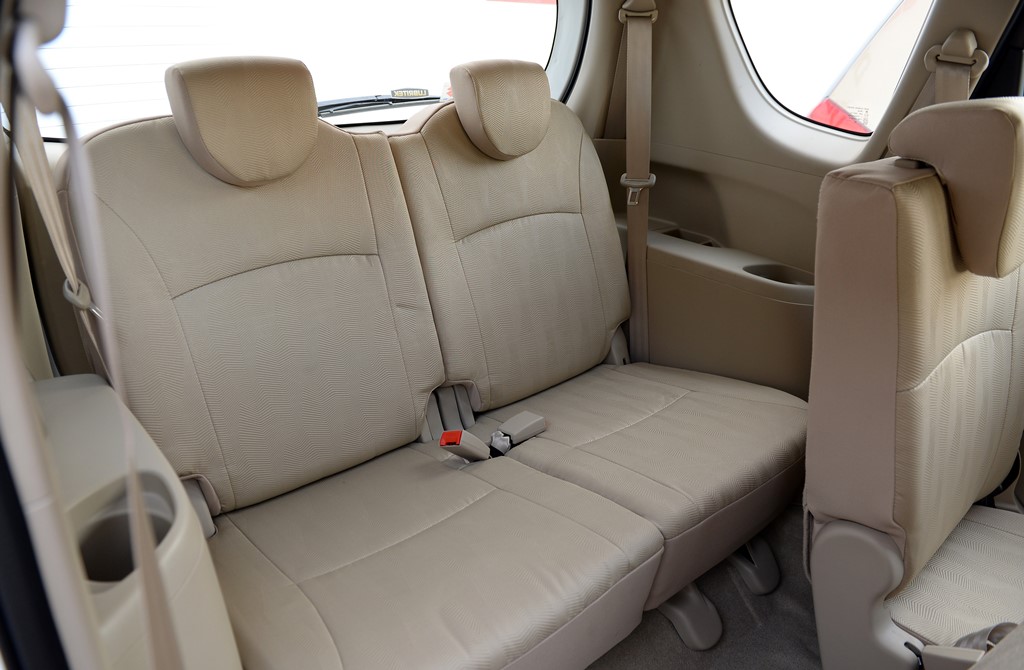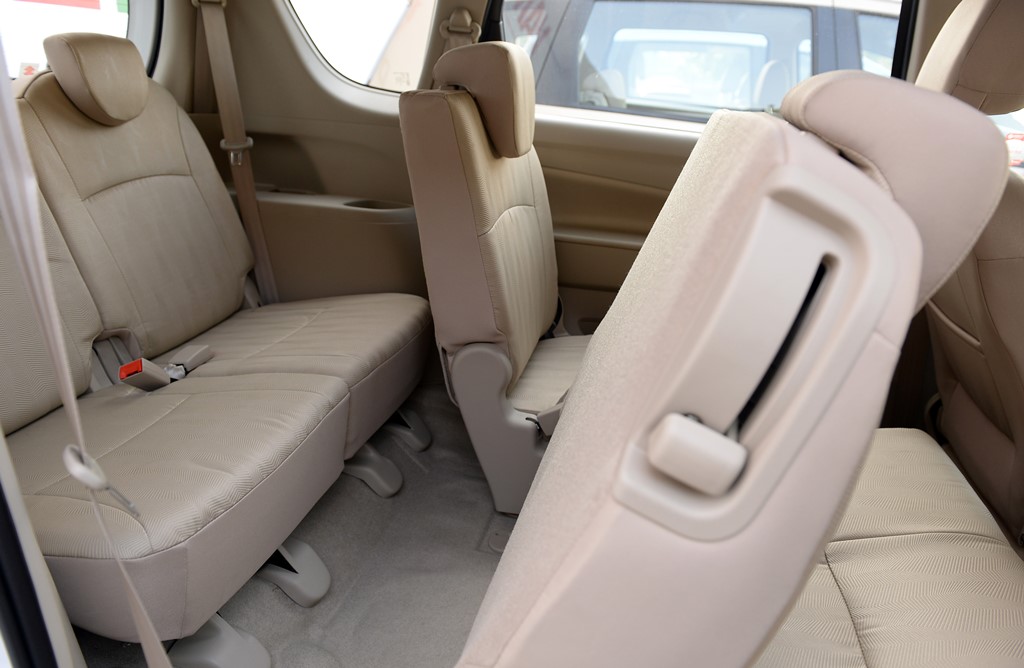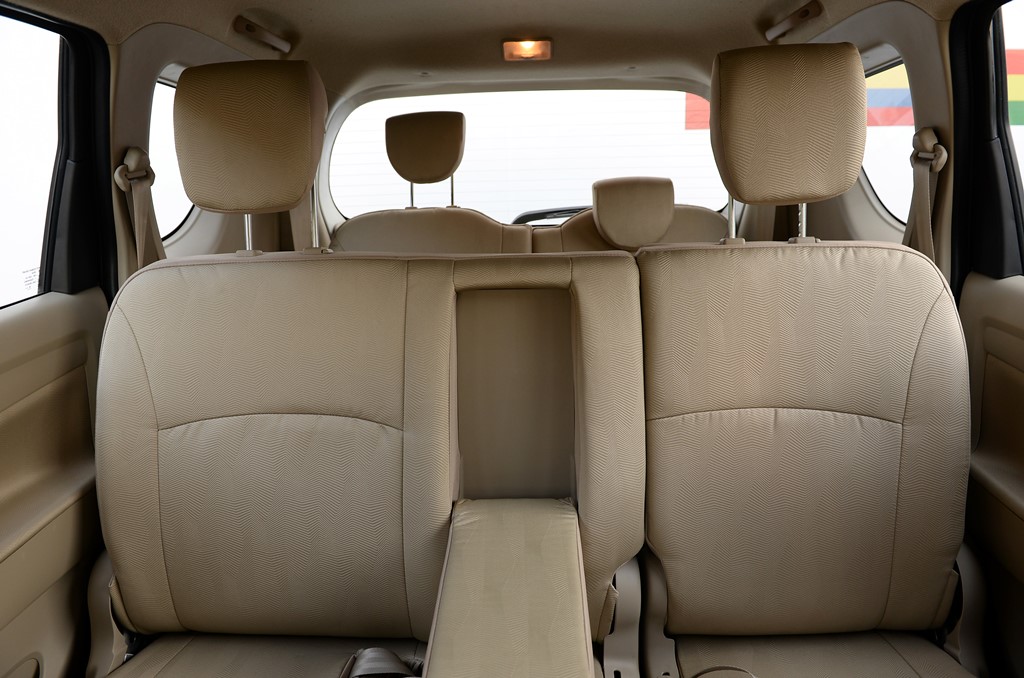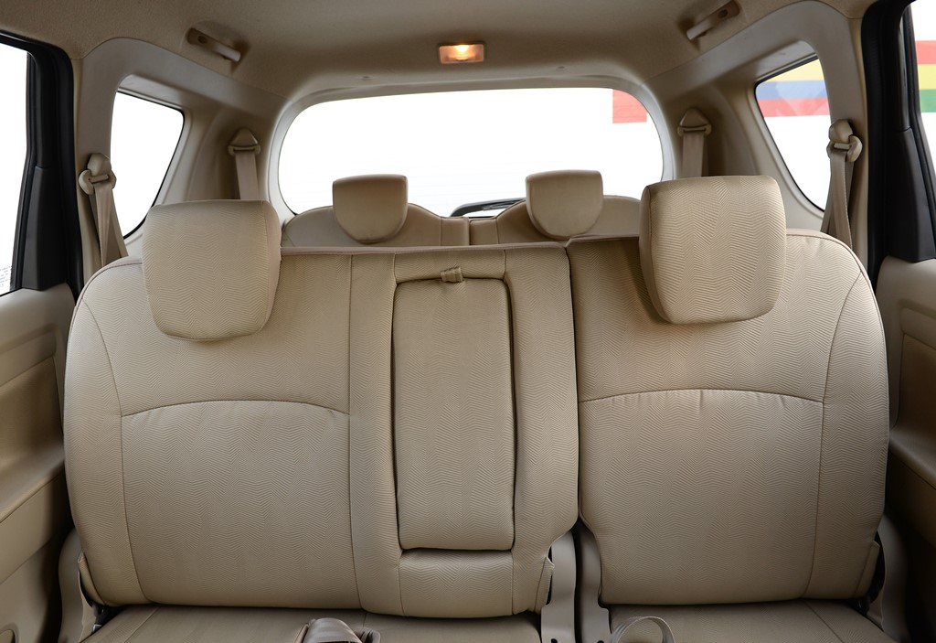 Su interior acabado y elegante dispone de un tablero en doble tono, tapicería Premium, apoya brazo central en la segunda fila, apoya cabezas (menos en el asiento del medio en 2° fila) y manillas interiores cromadas. También destacan sus múltiples espacios inteligentes como maletero con doble fondo, segunda y tercera fila con posa vasos y compartimientos, además de guantera de alta capacidad de almacenamiento, entre otros.