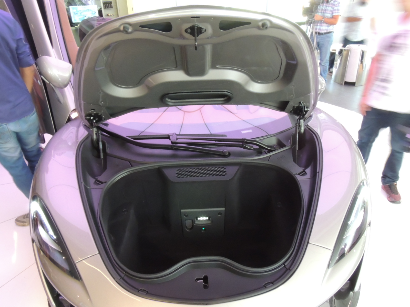 El espacio interior de este biplaza es completamente pensado en la comodidad del piloto y en su uso diario, por lo que resalta su maletero de 150 litros ubicado en la parte delantera del vehículo. Su sistema de audio posee cuatro parlantes, sin embargo, existe la opción de incorporar el McLaren Audio Plus que cuenta con ocho altavoces o el sistema Premium Bowers & Wilkins de 12 altavoces.