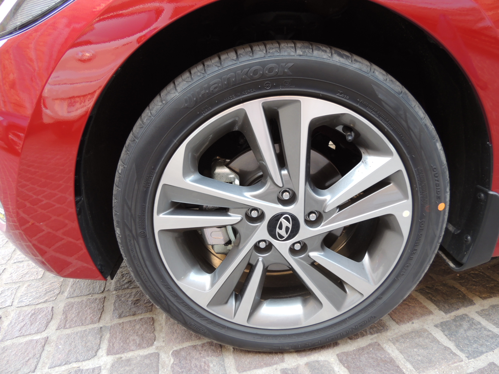De costado, el nuevo Elantra 2016 mantiene la baja línea de techo, heredada de la camada saliente, destacando los pasos de ruedas anchos que le proporcionan estabilidad y un perfil deportivo al conjunto. Su coeficiente aerodinámico pasó de un Cx 0.28 a Cx 0.27, gracias a mejoras aplicadas a su largo de maleta ampliado, spoiler de parachoque trasero, además de la suspensión trasera cubierta. Todas las versiones, salvo la 2.0 GLS Full, calzan neumáticos Kumho Ecowing de medida 205/55 R16 con llantas de acero en los acabados GL y de aleación en los GLS. La versión 2.0 GLS Full equipa neumáticos Hankook Ventus Prime de medida 225/45 R17 ornamentados con elegantes llantas de aleación de cinco rayos dobles.