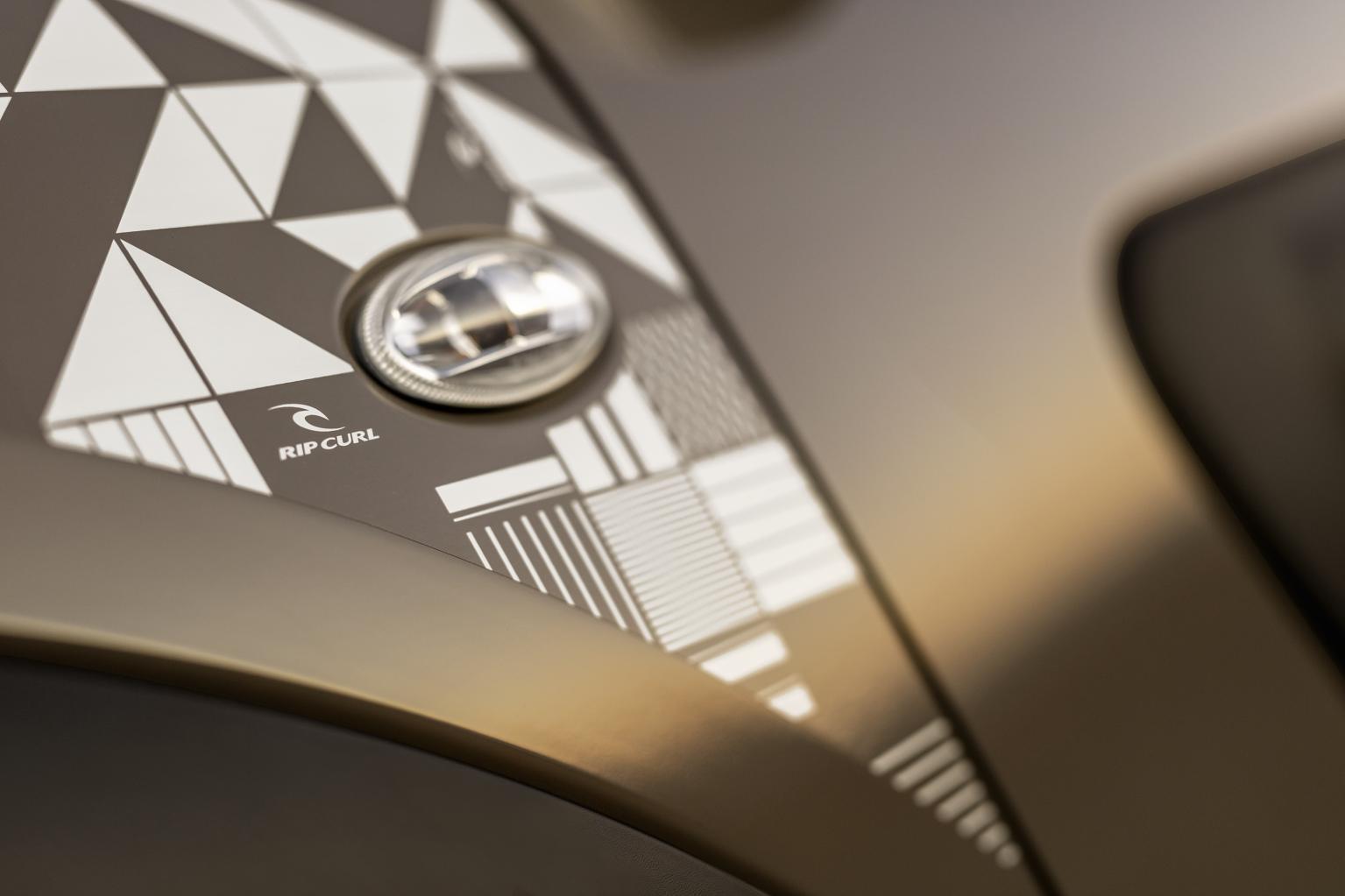 Esta versión se distingue visualmente por elementos exclusivos tanto en el exterior como en el interior. El look específico del Citroën C4 Cactus Rip Curl integra: carcasas de los retrovisores y barras de techo blancas y un adhesivo también blanco brillante, que mezcla motivos geométricos con el logo de Rip Curl. Su zaga incorpora el mismo motivo, aplicado horizontalmente, al que se añade la firma Rip Curl en letras blancas. Un grafismo que ancla al vehículo en el universo del surf.