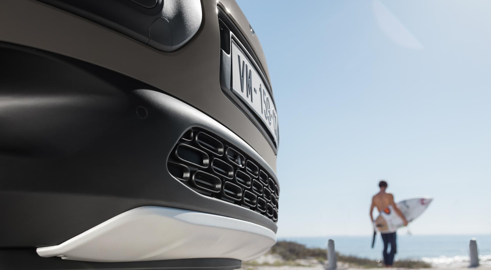 Su habitáculo incluye toques de color Pulp Orange. Un color que evoca energía y dinamismo. Los cinturones de seguridad coloreados Pulp Orange contrastan con el guarnecido interior de los asientos disponibles en Tejido Mica Gris (de serie) o en Mixto Cuero Gris (en opción). Este mismo color aparece puntualmente en el suelo. Las alfombrillas disponen de pespuntes Pulp Orange y de una etiqueta que lleva el logo de la marca de surf. Siempre en busca de esa contraposición con el ambiente Stone Gris que reina en el interior, dispone de embellecedores de altavoces Pulp Orange. Por último, y como un guiño a los equipajes y por ello los viajes, el salpicadero con un puesto de conducción liberado y conectado con mandos agrupados en la tableta táctil de 7’’, hereda la tapa de la guantera (TOP BOX) tratada con correas y hebillas al modo de los grandes baúles de viaje.
