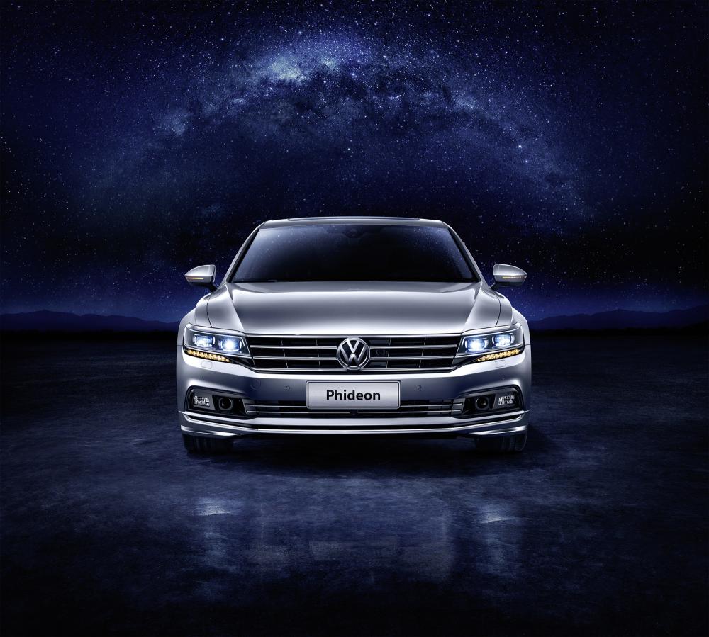 El equipo de diseño de Volkswagen está orgulloso de haber podido transferir al Phideon, casi completamente, el impresionante concepto del prototipo Volkswagen C Coupé GTE presentado en 2015 en el Salón del Automóvil de Shanghái. Es el primer Volkswagen fabricado en base a la plataforma MLB (Bloque de Construcción Modular Longitudinal). Su denominación es una palabra artificial que es sinónimo de elegancia y fiabilidad. Fonética y simbólicamente deriva del término «Fides», nombre de la diosa romana de la fidelidad.