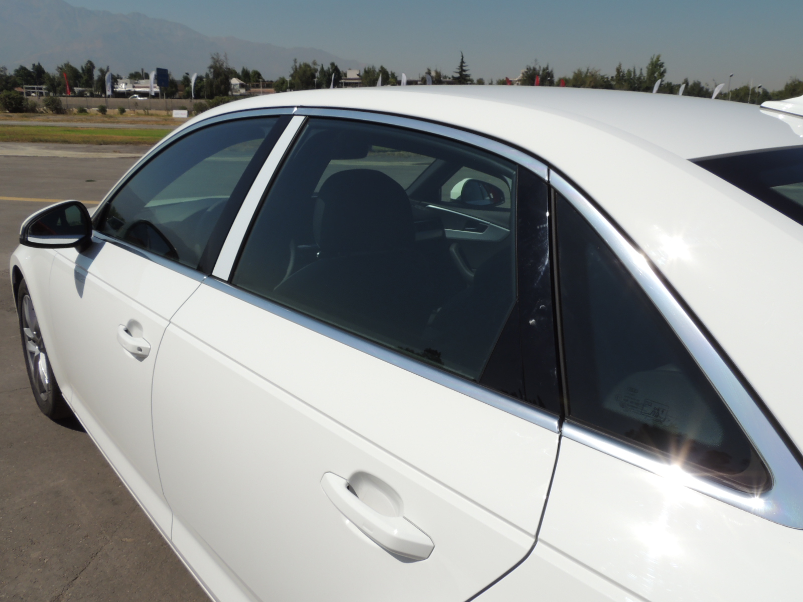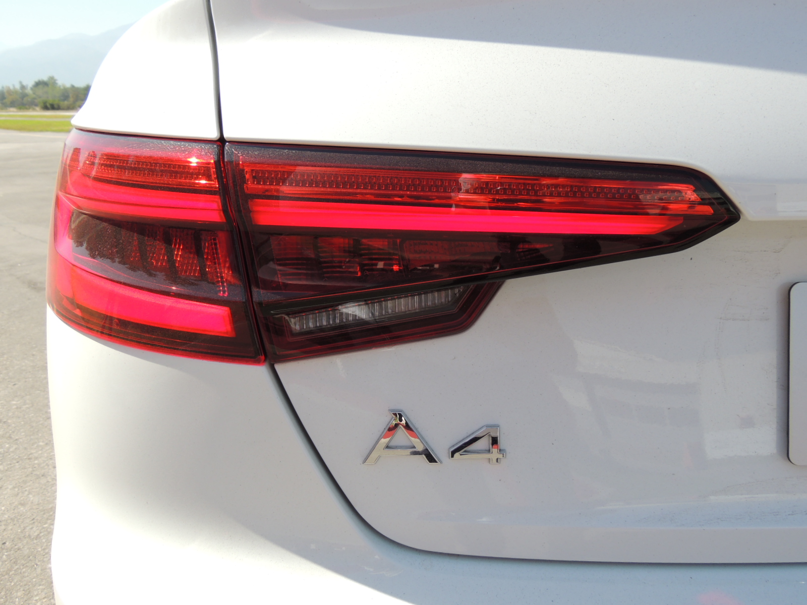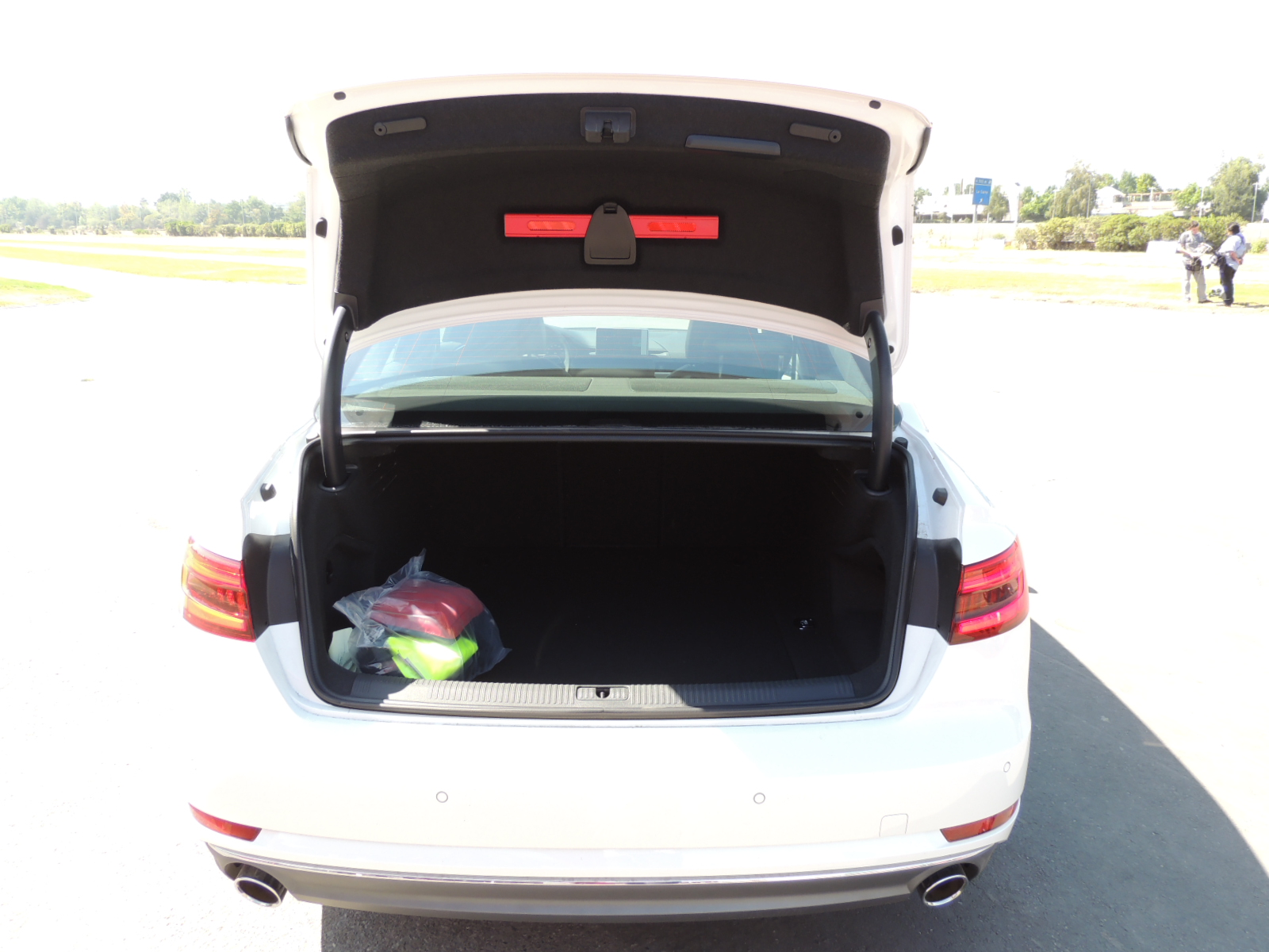 En términos dimensionales, el nuevo Audi A4 creció por dentro y por fuera. El sedán tiene una longitud que ahora alcanza los 4.726mm (25mm +); 1.842mm de ancho (16mm+) y una altura que se mantiene en los 1.427mm. Su batalla se incrementó en 12mm, alcanzando los 2.820mm. La versión cuyas fotos ilustran esta nota (2.0 TFSI Stronic Sport 190 HP), monta neumáticos Michelin Primacy3 con llantas de aleación de aluminio de 5 radios en paralelo. Las otras versiones emplean neumáticos de medida 205/60 R16, también con llantas de aleación.