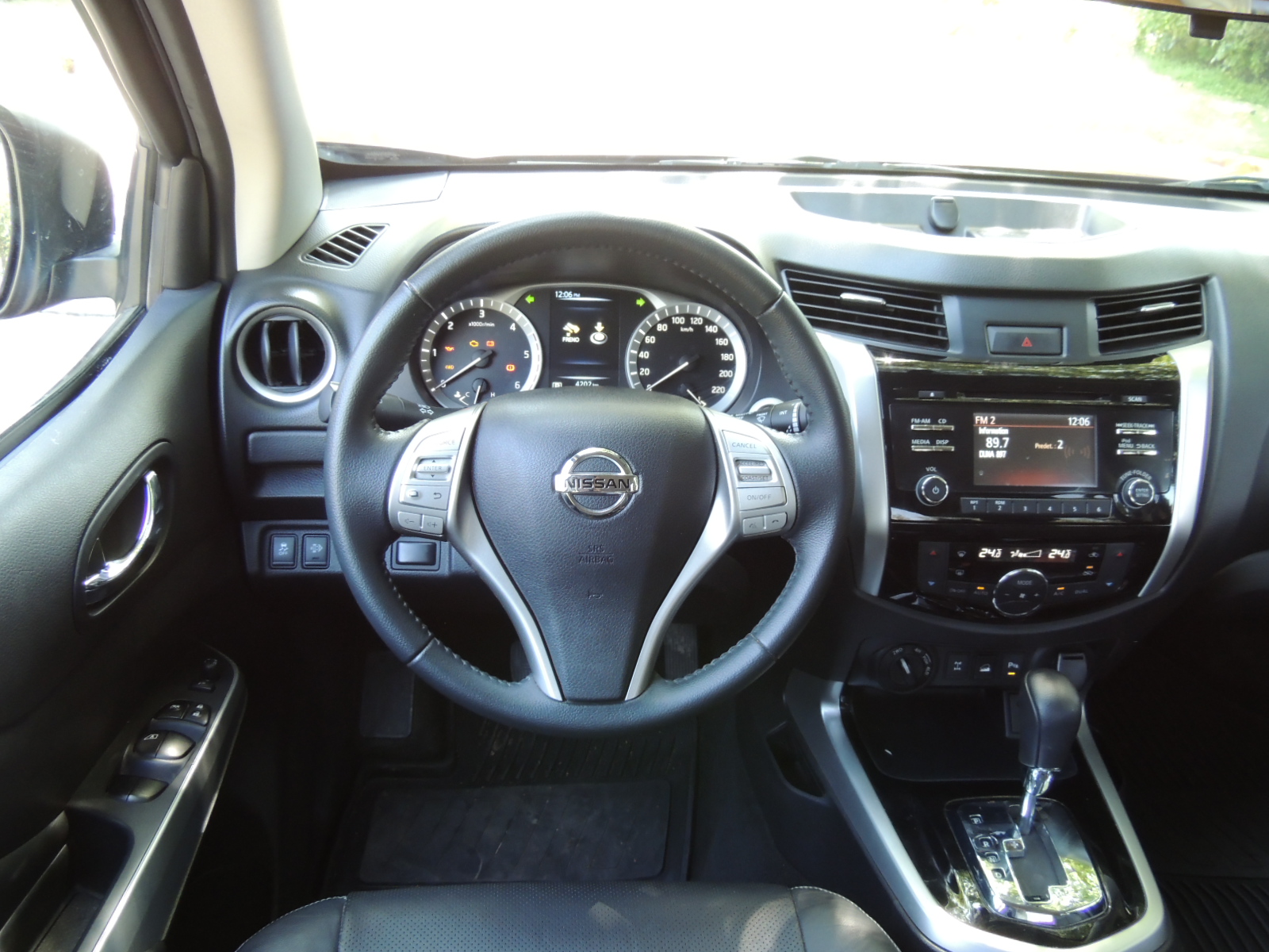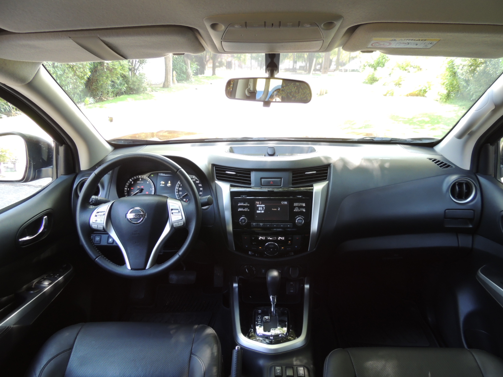 El parachoques luce bastante anguloso y en sus extremos encontramos los encastres con aplicaciones cromadas, de forma similar a los ópticos principales, que alojan los neblineros circulares, además de una toma de aire central. Dos difusores de aire centrales, ayudan a la aerodinámica de la NP 300. Otro detalle que no podemos pasar por alto, es que desde dentro, la particular forma de su capó hace que se vea menos ancha de lo que realmente es. Para quienes no estamos muy habituados a conducir vehículos de este tamaño, no resulta fácil acostumbrarse a la hora de realizar maniobras de estacionamiento, a lo que si ayudaría el hecho de contar con al menos un par de sensores acústicos que nos alerten de la cercanía de un objeto. Su generosa altura, permite que tenga un muy buen ángulo de ataque (33º) a la hora de enfrentar pendientes complejas.