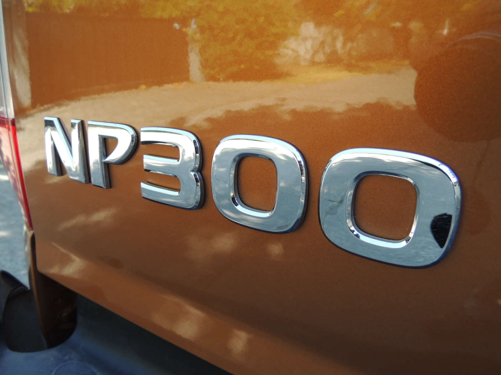 La zaga de la NP luce igual de robusta que el resto de su carrocería, con generosos ópticos dispuestos verticalmente en los extremos, un portalón amplio, en cuya sección central encontramos la manilla cromada para abrir y cerrar (con cerradura), que también alberga la cámara de reversa que es complementada con sensores acústicos montados en el paragolpes también cromado, revestido en su parte superior con resina plástica para las labores de carga y descarga. Su ángulo de salida es de 27,9º.