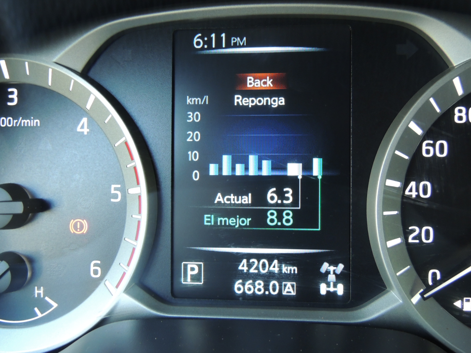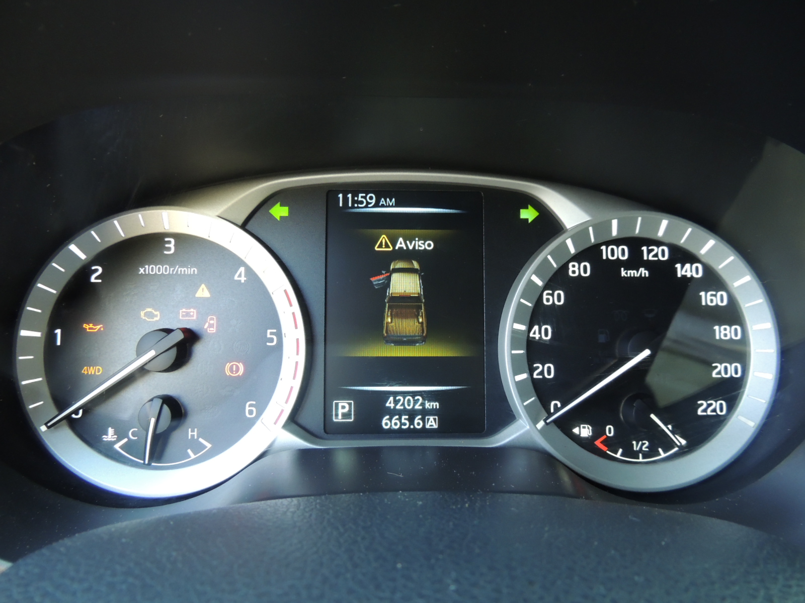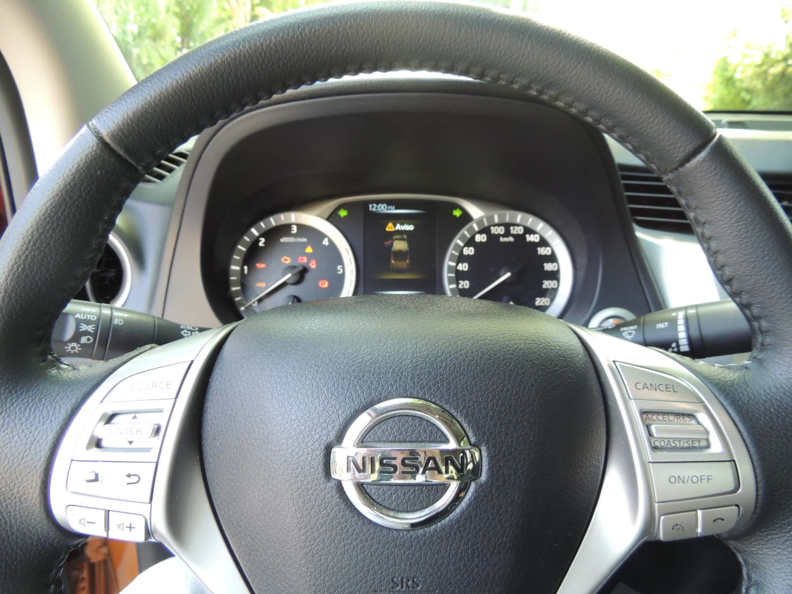 El cuadro de instrumentos es más que completo. Dos esferas analógicas circulares satinadas con gráfica blanca, albergan el tacómetro con medidor de la temperatura del refrigerante del motor y velocímetro con indicador del nivel de combustible en el estanque. Pero lo más entretenido es el computador de abordo, que Nissan denomina como «Advanced Drive Assist» en 3D a color que entrega información acerca de parámetros claves para el manejo como: