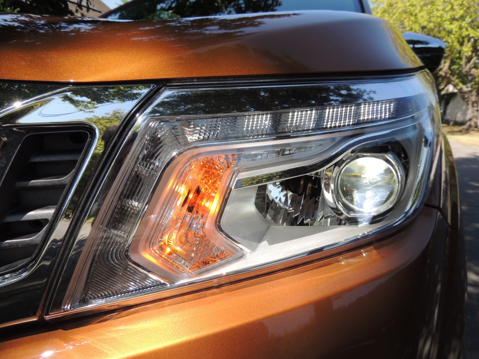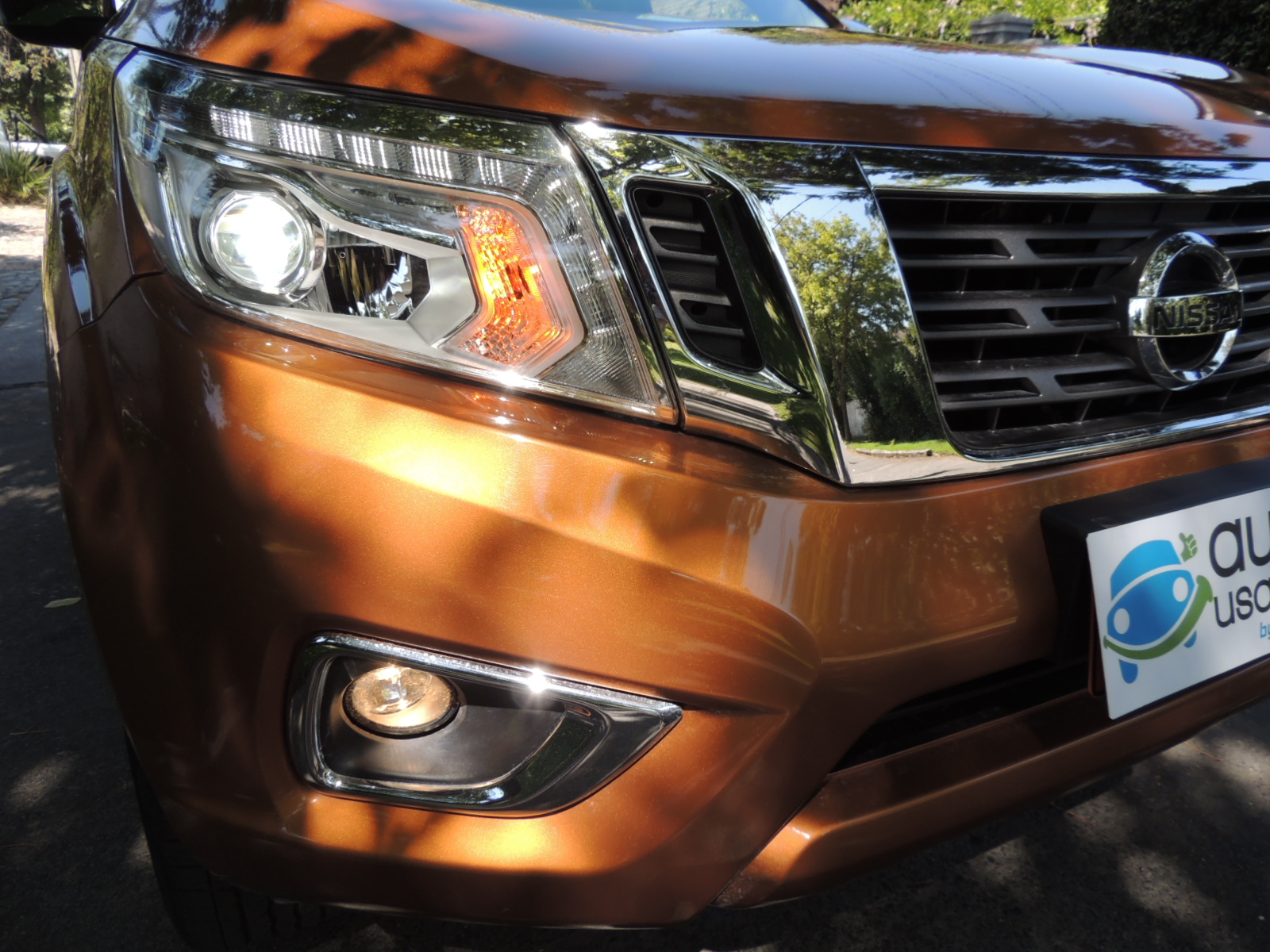 Al ver su frontal, vemos que su frontal va en directa sintonía con otros modelos de la marca, destacando su prominente máscara cromada, que luce como una suerte de V ampliada, con el logo Nissan en relieve al centro. Esta pieza va escoltada en ambos costados por generosos ópticos dispuestos en forma de boomerang con la firma Nissan en las luces LED (privativas de este acabado, puesto que todas las otras emplean bombillas de halógeno). Dado que es una camioneta preparada para hacer frente a caminos barrosos o polvorientos, nos hubiese gustado que contase con lavafaros, como si se ofrece en otros mercados.
