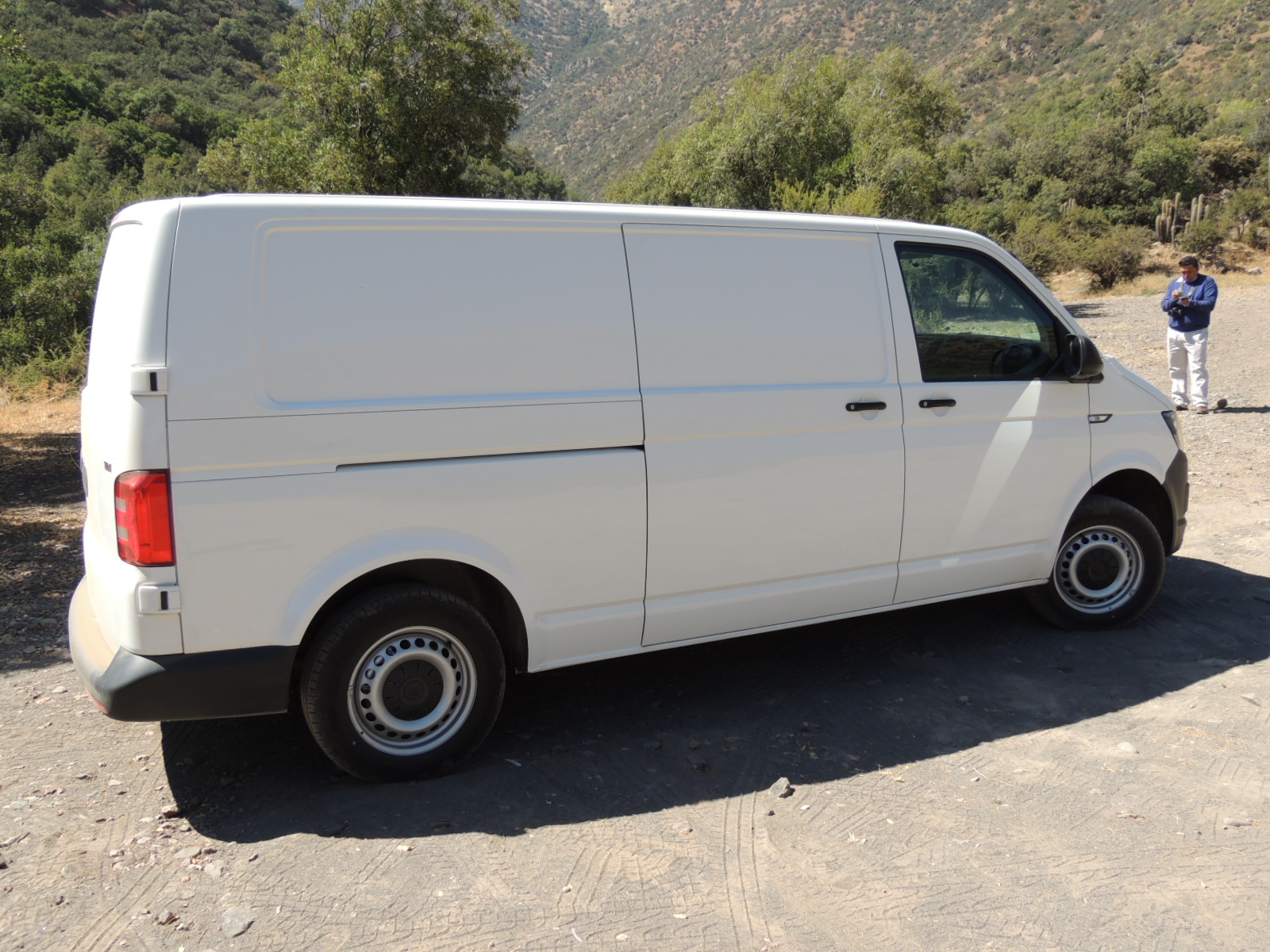 Si la apreciamos de perfil, podemos advertir que los espejos retrovisores externos van en una posición ligeramente más baja, mientras que los repetidores de los intermitentes laterales se ubican bajo la línea de cintura que recorre al Transporter.