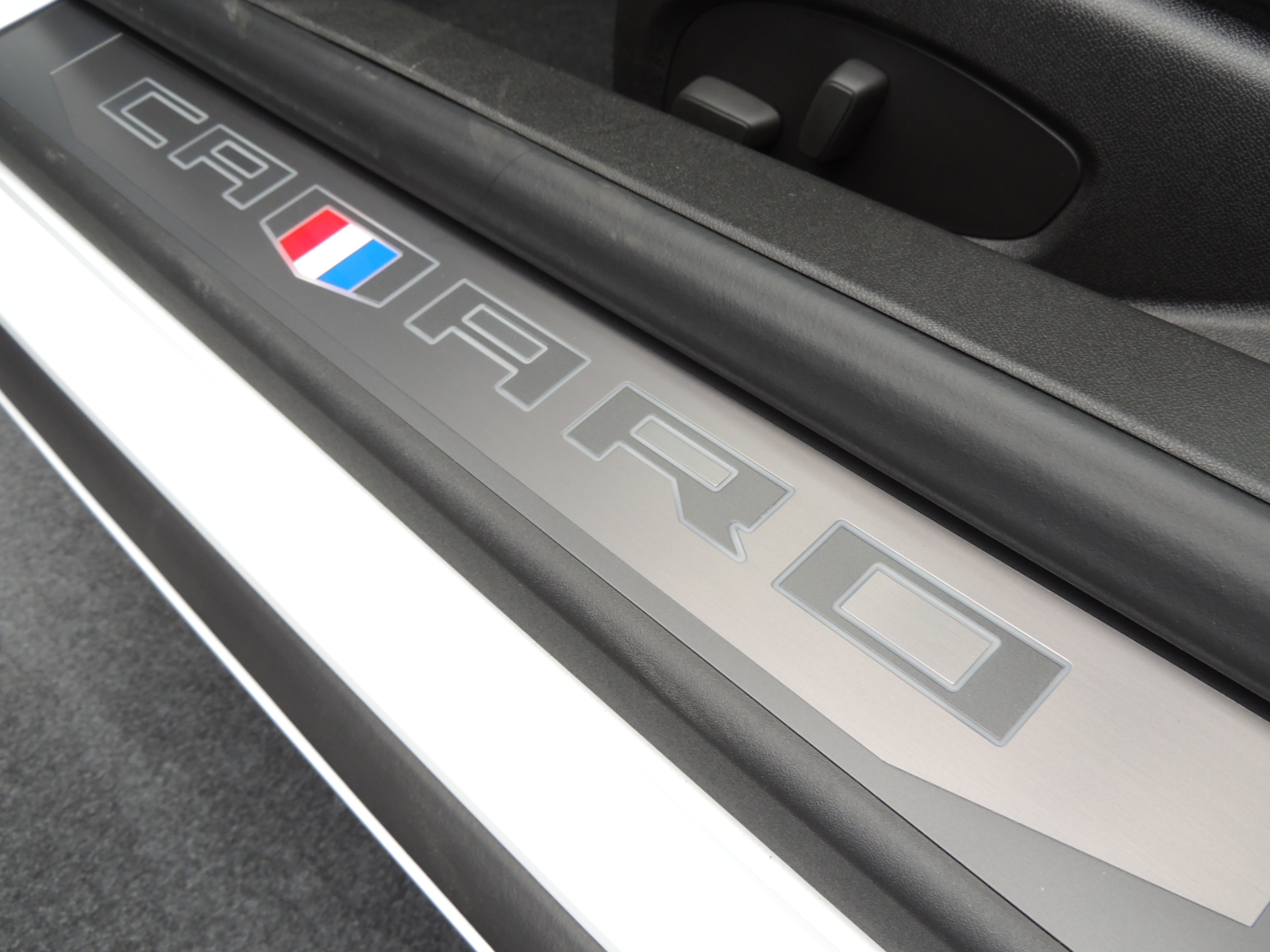 De costado encontramos que la proporción de la zona vidriada disminuyó, lo que se aprecia sobre todo en la ventanilla trasera lateral. El paquete SS con el que llega a Chile cuenta neumáticos Goodyear Eagle F1 de medida 245/40 ZR20 delanteros y 275/35 ZR20 traseros con llantas de aluminio de 5 rayos. Un guiño retro son las grafías cromadas en blanco, rojo y azul situadas en los pasos de ruedas delanteros con la leyenda «Camaro» grabado en negro.