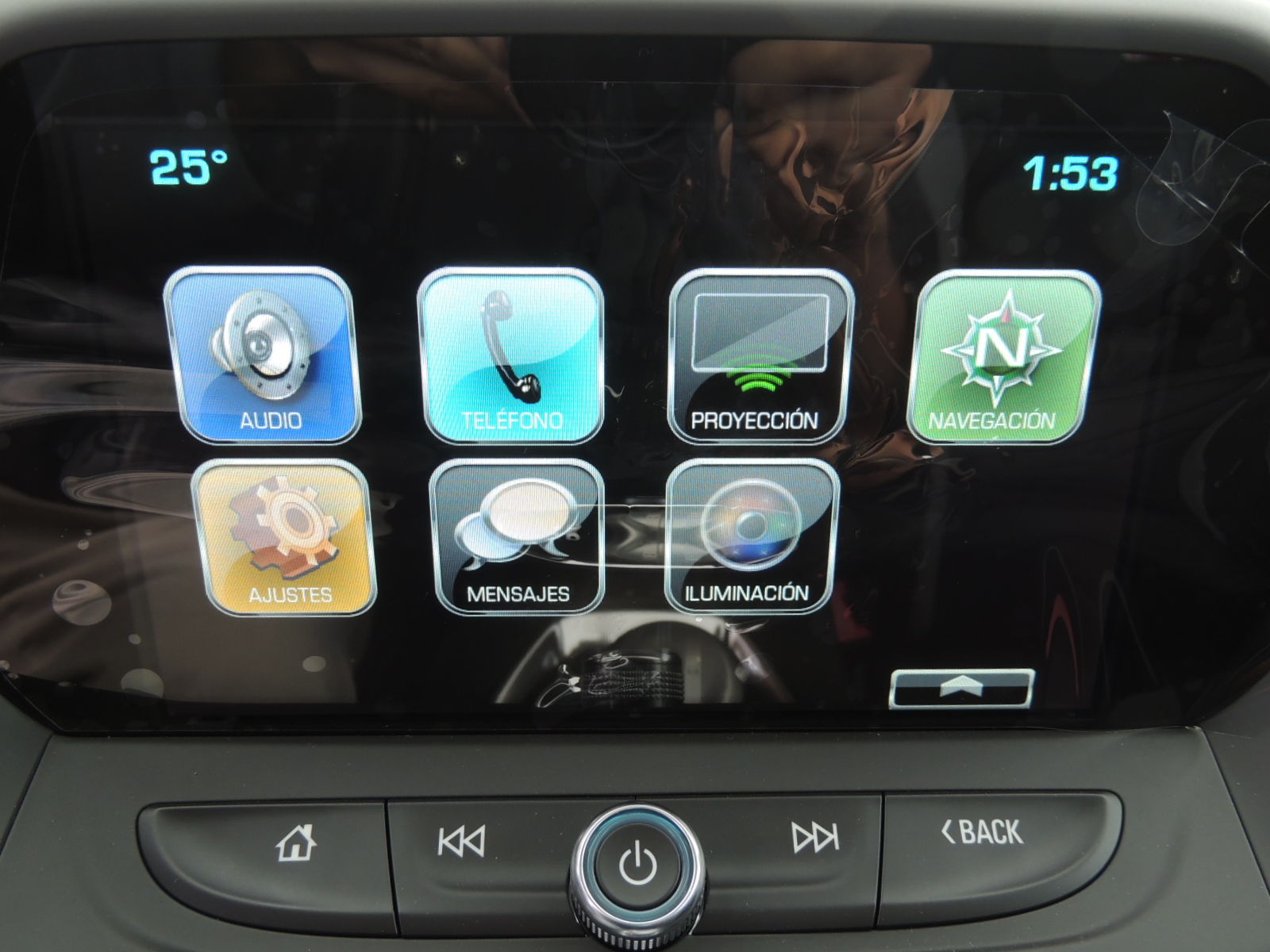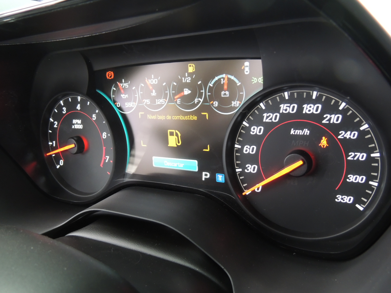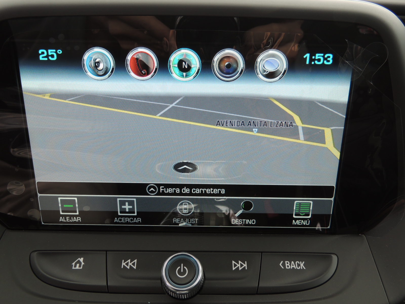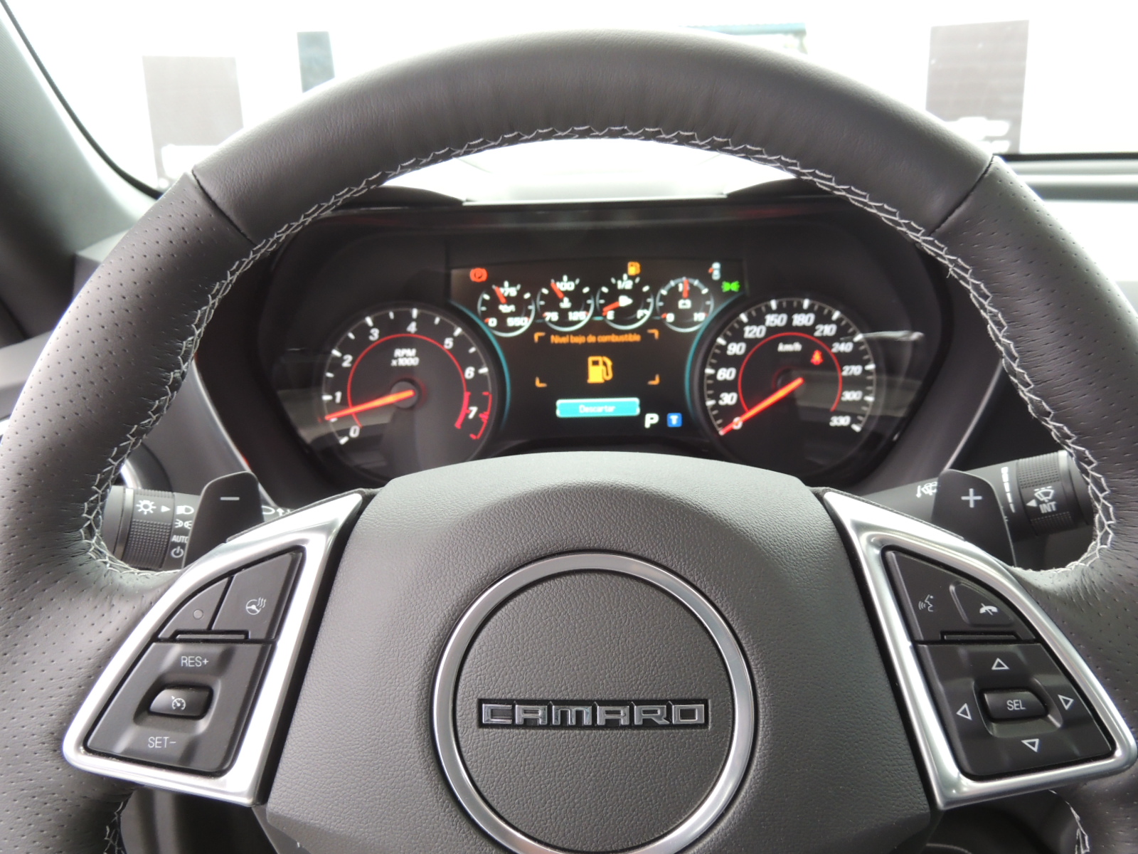 En la parte alta de la consola encontramos una pantalla de ocho pulgadas, integrada en el panel de instrumentos central, sirve como interfaz para el mejorado sistema Chevrolet MyLink de última generación. El volante es nuevo, donde el tradición pajarito de Chevrolet da paso a las insignias de Camaro y la reubicación de las rejillas del climatizador a la altura de la palanca de cambios. Nuevo y cómodo nos resultó el freno de mano de accionamiento electrónico, que hace ganar más espacio en esa del auto.