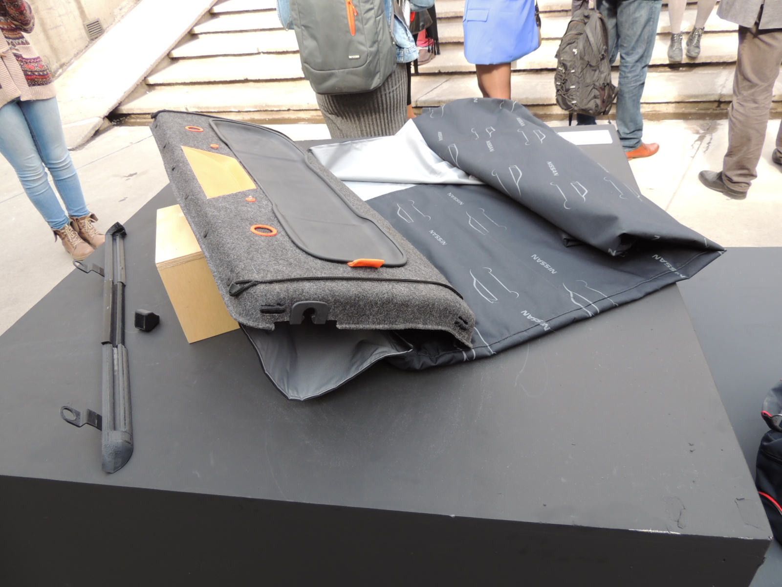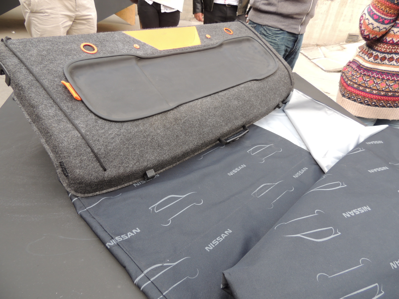 Su creación se denominó “Meeting” y está pensada para entregar la máxima funcionalidad a los usuarios del juvenil modelo de Nissan. Se trata de un sistema de sonido y convivencia portátil, ubicado en la bandeja de la maleta del auto. El audio funciona gracias al principio de inducción es decir, toma las ondas magnéticas de cualquier smartphone sin necesidad de cables, conexiones o bluetooth amplificándolas. “Meeting también cuenta con una manta diseñada con telas de alta tecnología, anti-roce e impermeabilidad, que permiten desplegarlo en cualquier superficie”, señalaron los miembros del grupo ganador.