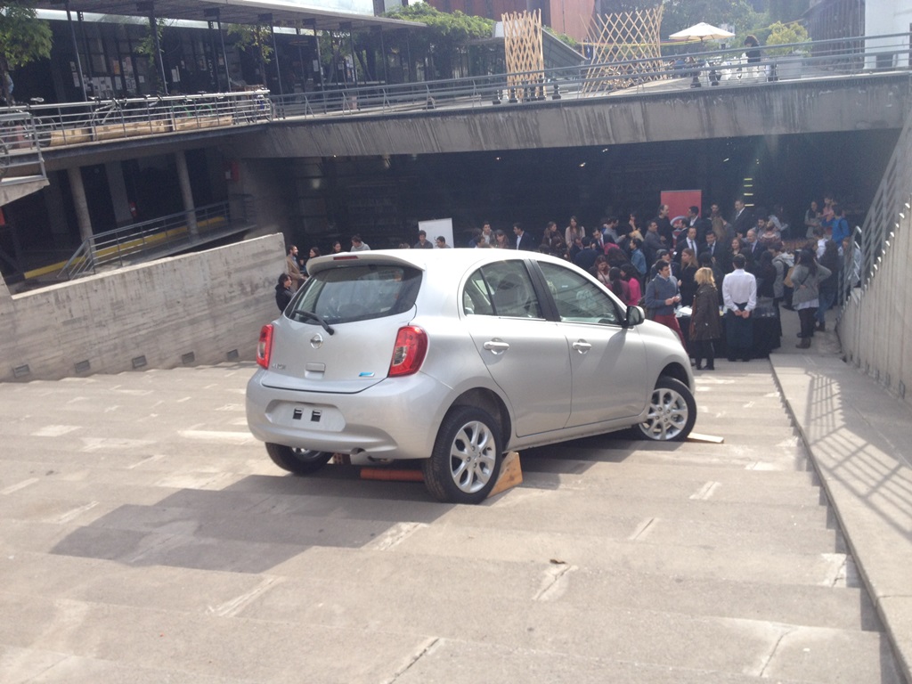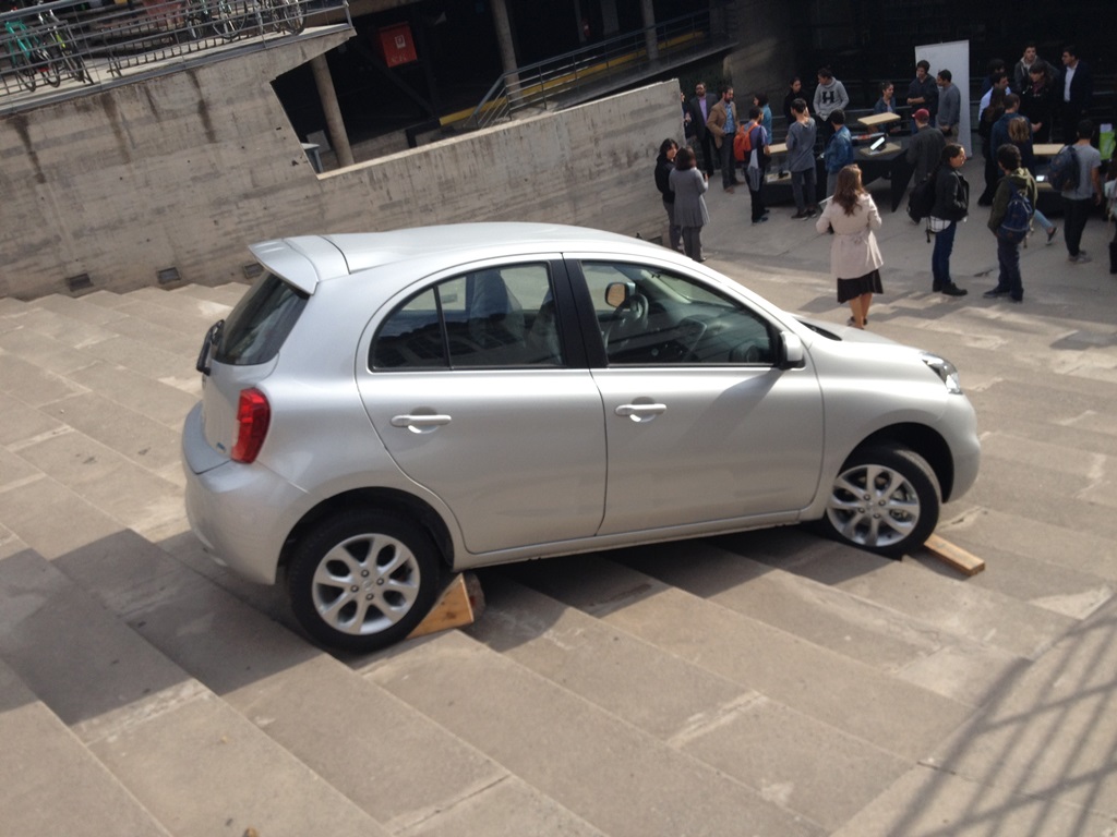 La mañana del jueves pasado nos presentamos en el Campus Lo Contador, donde funciona la Escuela de Diseño de la Pontificia Universidad Católica de Chile. Uno de sus patios contiguo a un amplio auditorio estaba revolucionado. De partida no es habitual encontrarse con un March Sport gris plata encaramado en las escaleras de las dependencias de una universidad.