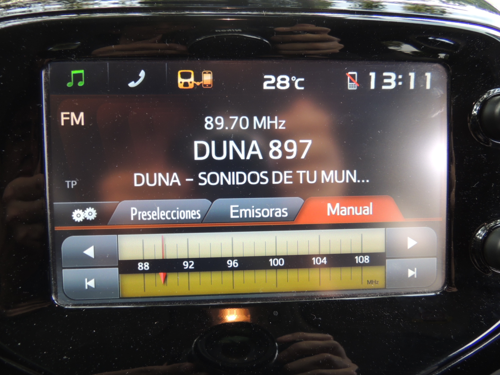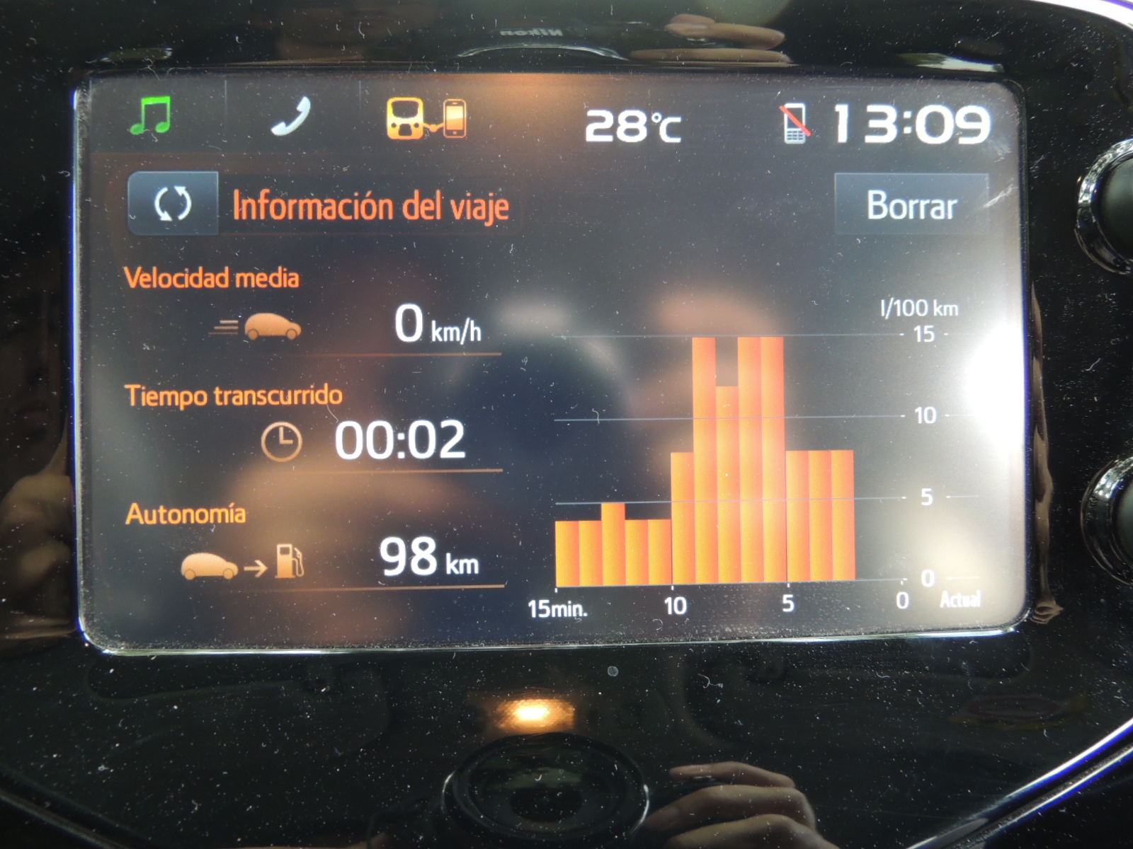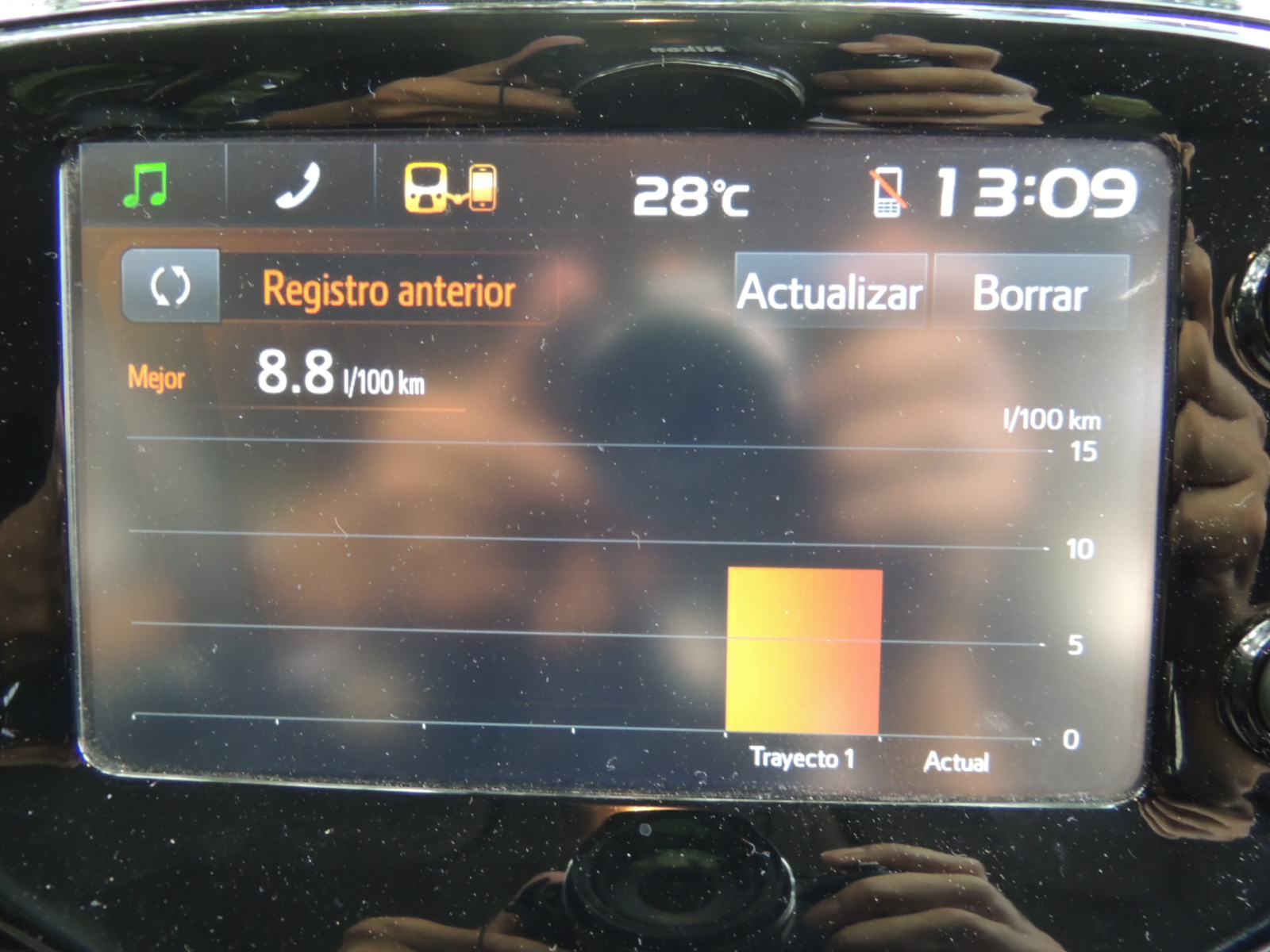 La pantalla proporciona información valiosa respecto del vehículo como son: velocidad media, tiempo de viaje, autonomía y consumo promedio (mediante un gráfico de barras). Para aquellos que gustan de la conectividad y la tecnología, pueden enlazar su celular inteligente de dos maneras: vía bluetooth o mediante el sistema Mirror Screen. Con esta última función, la pantalla viene a ser un espejo de nuestro celular, pudiendo operarlo con el simple toque de ésta.
