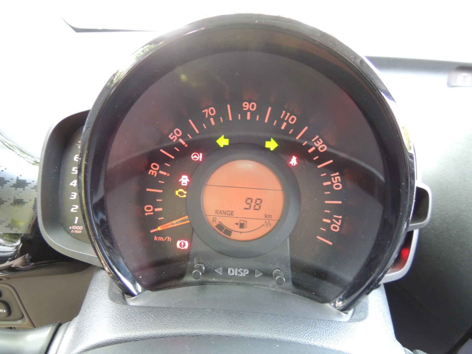 Si el exterior nos resultó atractivo, su cabina nos da cuenta de lo espacioso que es este urbano, donde todo está pensado para un uso intuitivo y cada elemento corresponde a una función concreta. Basta con ponernos detrás del volante, para encontrarnos con informaciones concentradas para una lectura de un vistazo, donde el cuadro de instrumentos es solidario con el volante regulable en altura y está cubierto por una visera que asegura su legibilidad bajo cualquier condición de luz. Encotramos un velocímetro analógico y una pantalla digital LCD dispuestos de manera concéntrica. A ambos lados, las extensiones acogen el tacómetro y una serie de testigos relevantes.
