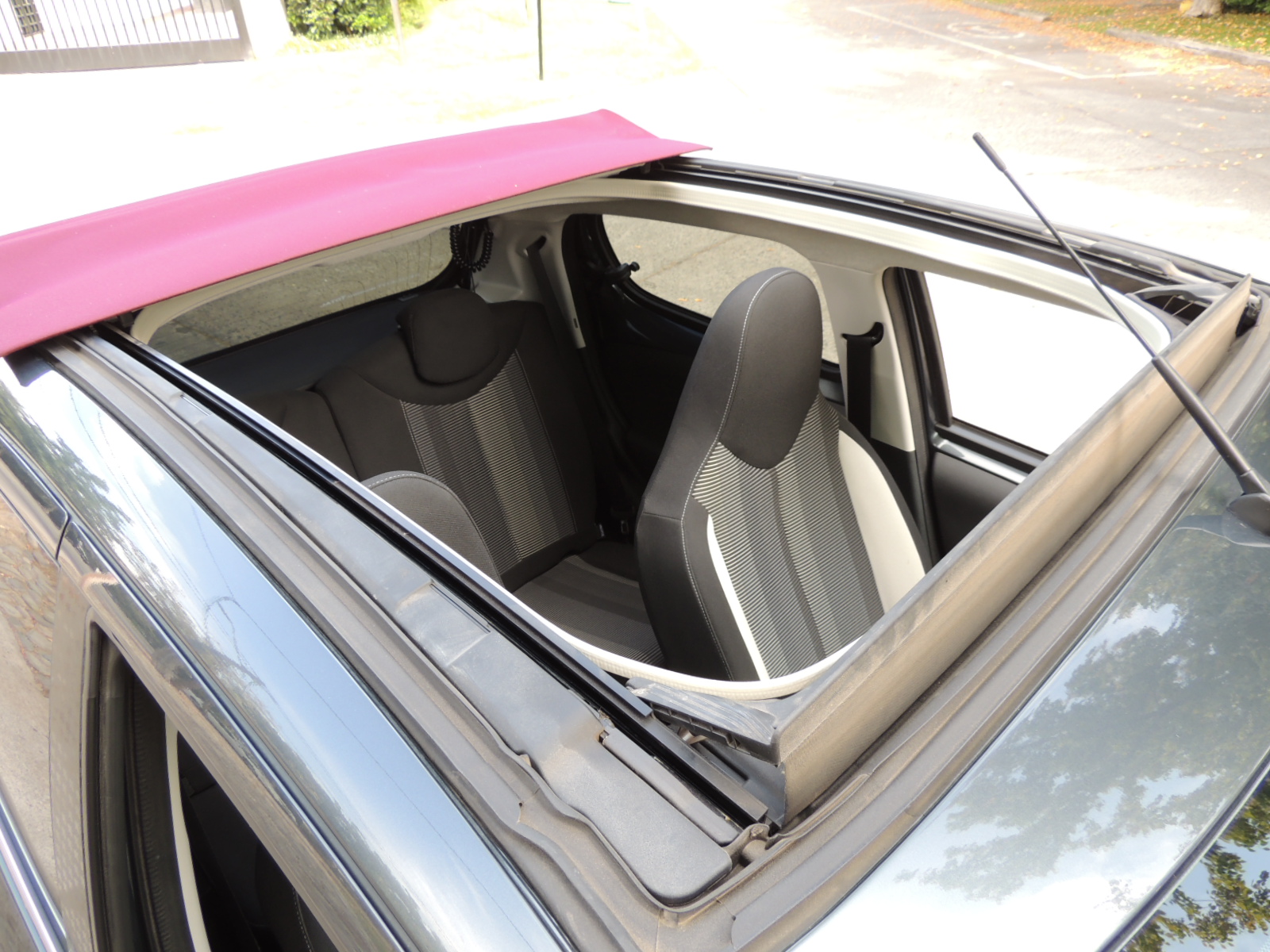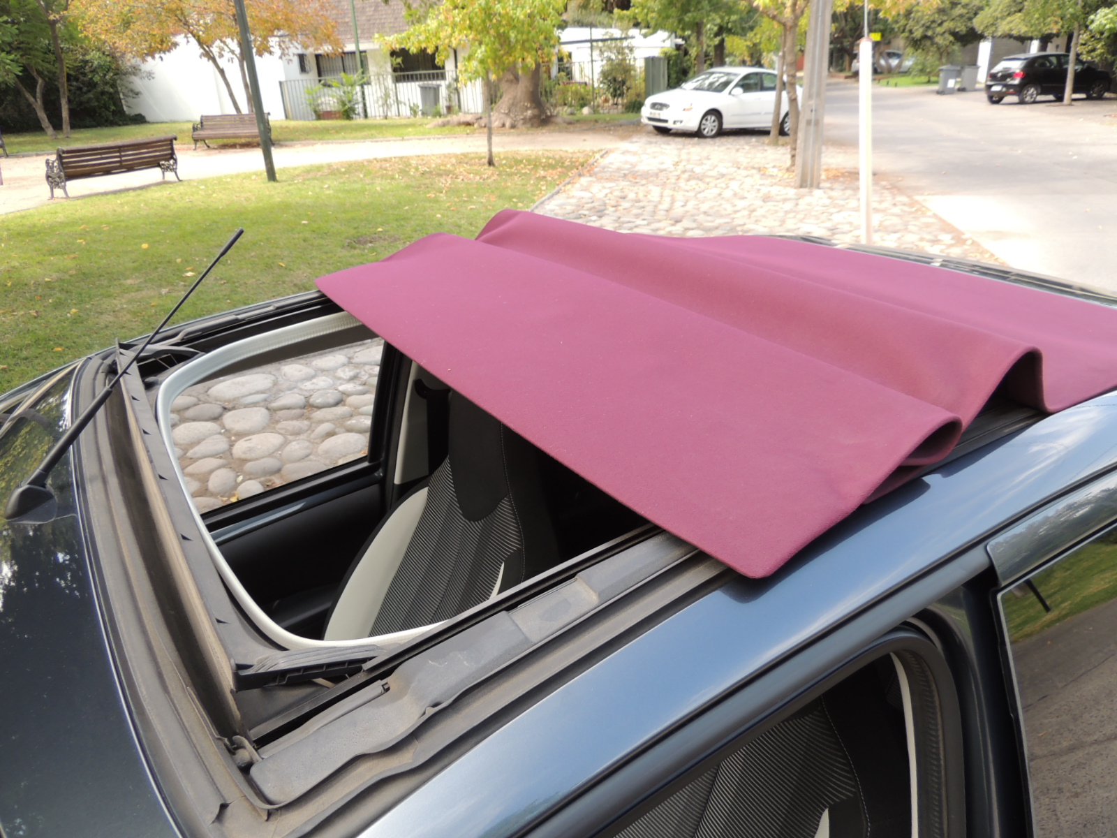Pero lo más llamativo que nos resultó, fue el levantar nuestra mano hacia la base del techo para accionar el mando eléctrico del techo de lona y abrirlo como uno desee hasta un máximo de 80cm de ancho por 76cm de largo. Es así como hallamos que se puede regular su apertura: solo adelante o las cuatro plazas. Un deflector aero-acústico se depliega automáticamente cuando plegamos el techo con la finalidad de evitar la ocurrencia de corrientes de aire dentro de la cabina.