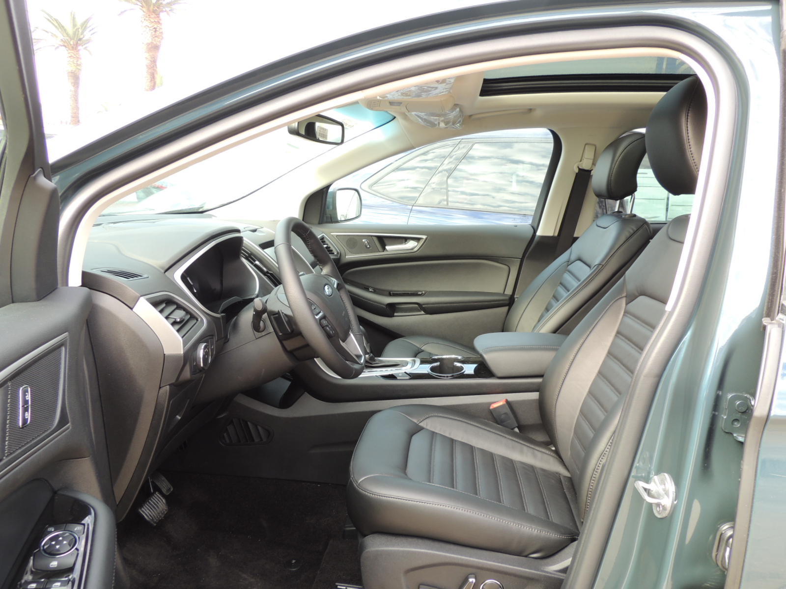 Característica privativa del Edge 3.5 SEL AWD es su techo panorámico provisto de dos generosos paneles de cristal que le otorgan luminosidad al habitáculo. La sección frontal se desliza hacia atrás pulsando un botón en la consola aérea situada sobre el retrovisor interior. Al estar completamente abierto, crea una apertura que luce tres veces más grande que la de un techo eléctrico común. Ford señala que el diseño de esta pieza está tan bien pensada, que si es sorprendido por una lluvia intempestiva, no se filtra agua al interior. Si quiere que el sol no lo moleste, basta con oprimir otro comando para que una cortilla eléctrica oculte el techo.