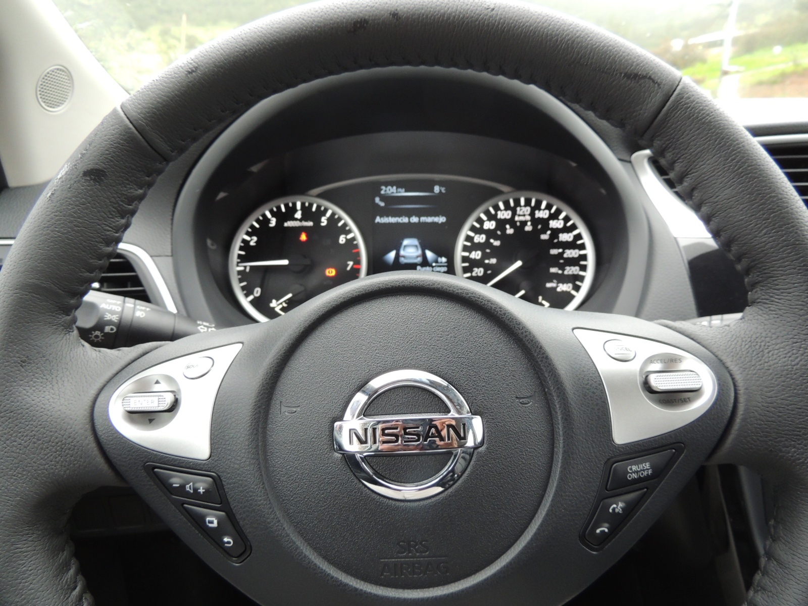 En cuanto al interior, Nissan Sentra presenta un volante inspirado en el Nissan 370Z; nuevo panel de instrumentos que ofrece una pantalla LCD TFT de 5 pulgadas con mayor resolución y con Advanced Drive-Assist Display (ADAD), mismo que facilita la interacción del vehículo con el entorno, de serie en las versiones Advance y Exclusive.