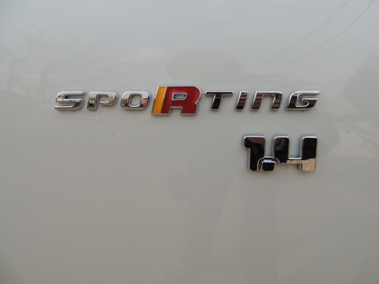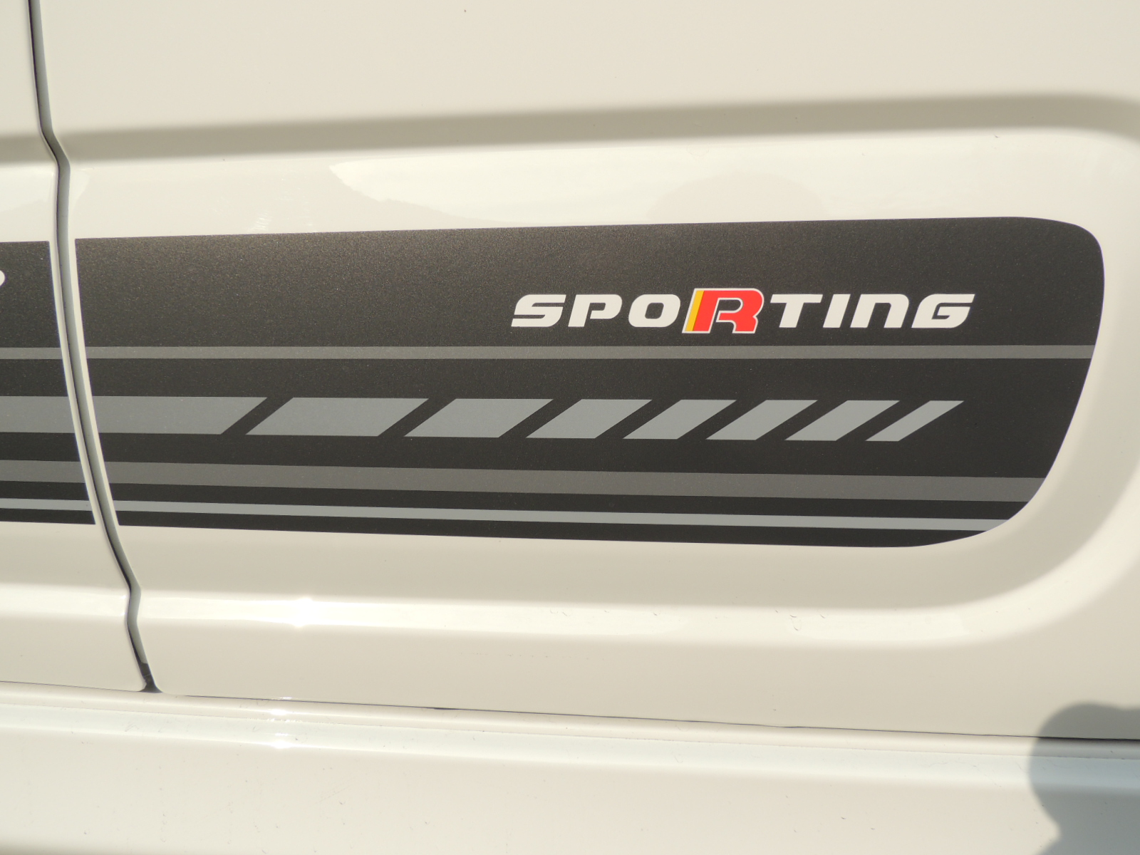 Lateralmente, los cambios son más que evidentes, y corren por cuenta de las llamativas franjas con la leyenda «Sporting» en las puertas, a la altura de los paddings protectores, además de un zócalo ligeramente distinto. Los espejos externos disponen de repetidores de los intermitentes.