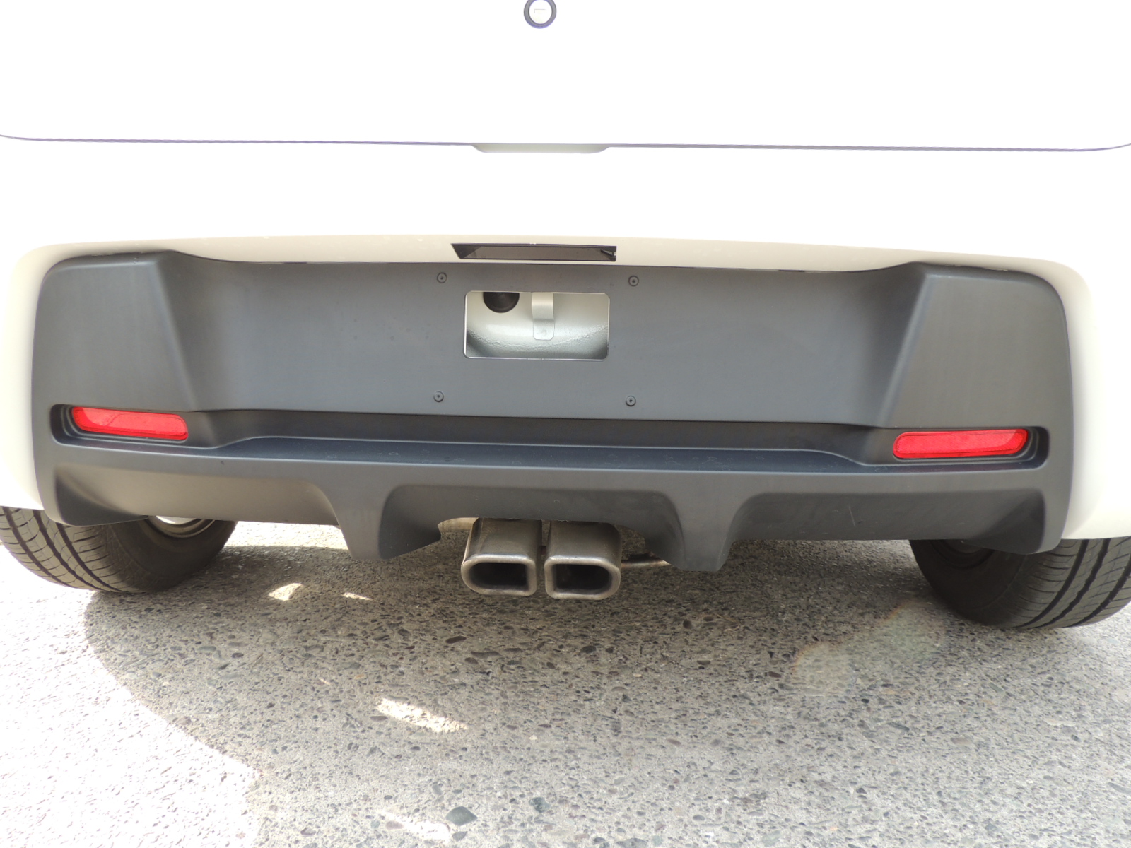 Al costado derecho del portalón va el monograma cromado en relieve (Sporting con la R resaltada en amarillo y rojo). En el parachoques hay evidentes modificaciones como los difusores laterales, el trasero central con sutiles reflectantes rojos y una salida de escape doble central.