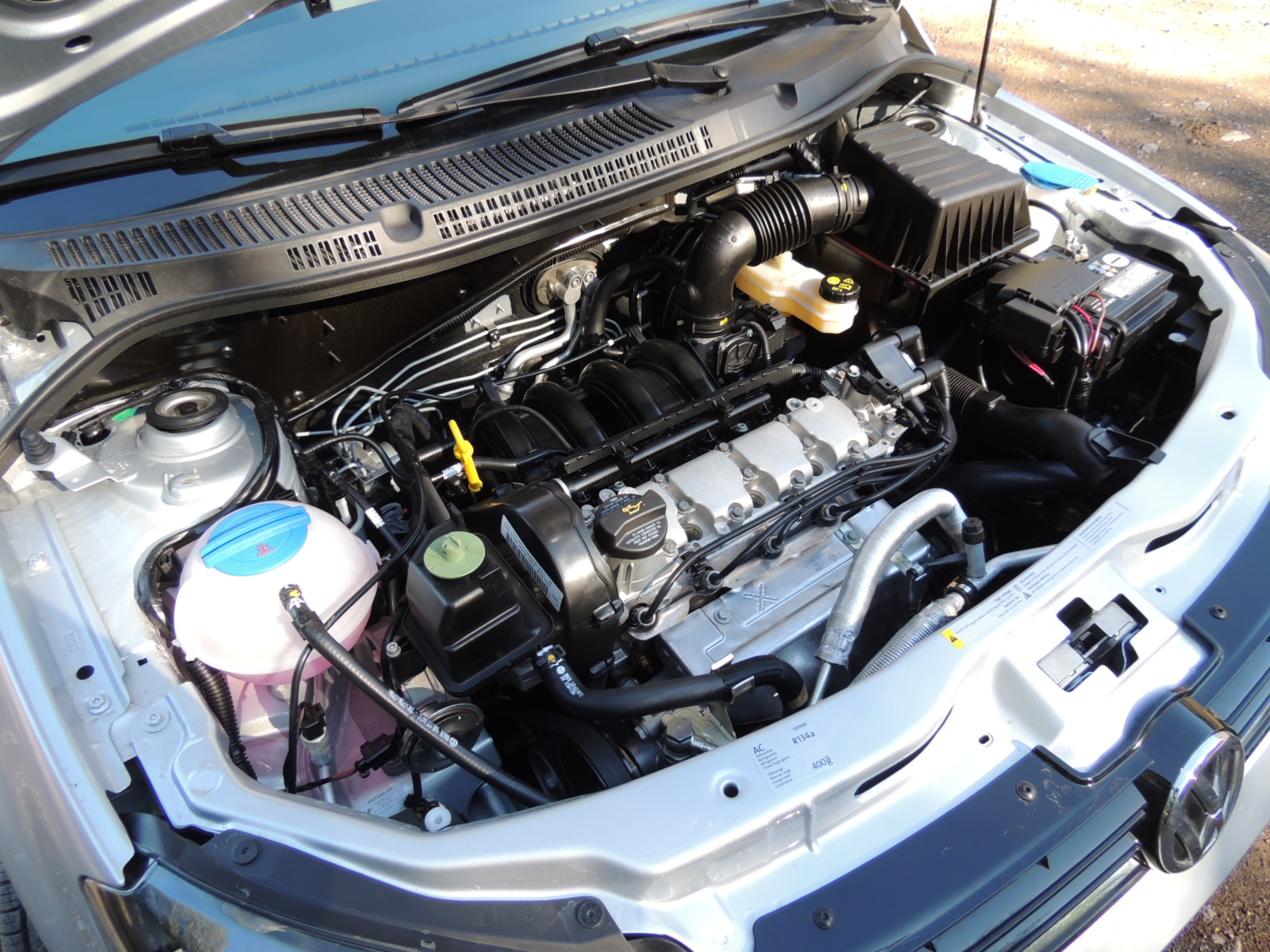 Bajo el capó, encontramos el clásico motor de 1.6l MSI (de la familia de motores EA211), que recientemente recibió mejoras para reducir la fricción, tiene una cilindrada de 1.598 cc, que entrega 101 CV y 143Nm, cuatro cilindros en línea y dos válvulas por cilindro (en otros mercados hay un 1.6 MSI con 16V y 110 CV). Va acoplado a una caja manual de cinco relaciones.