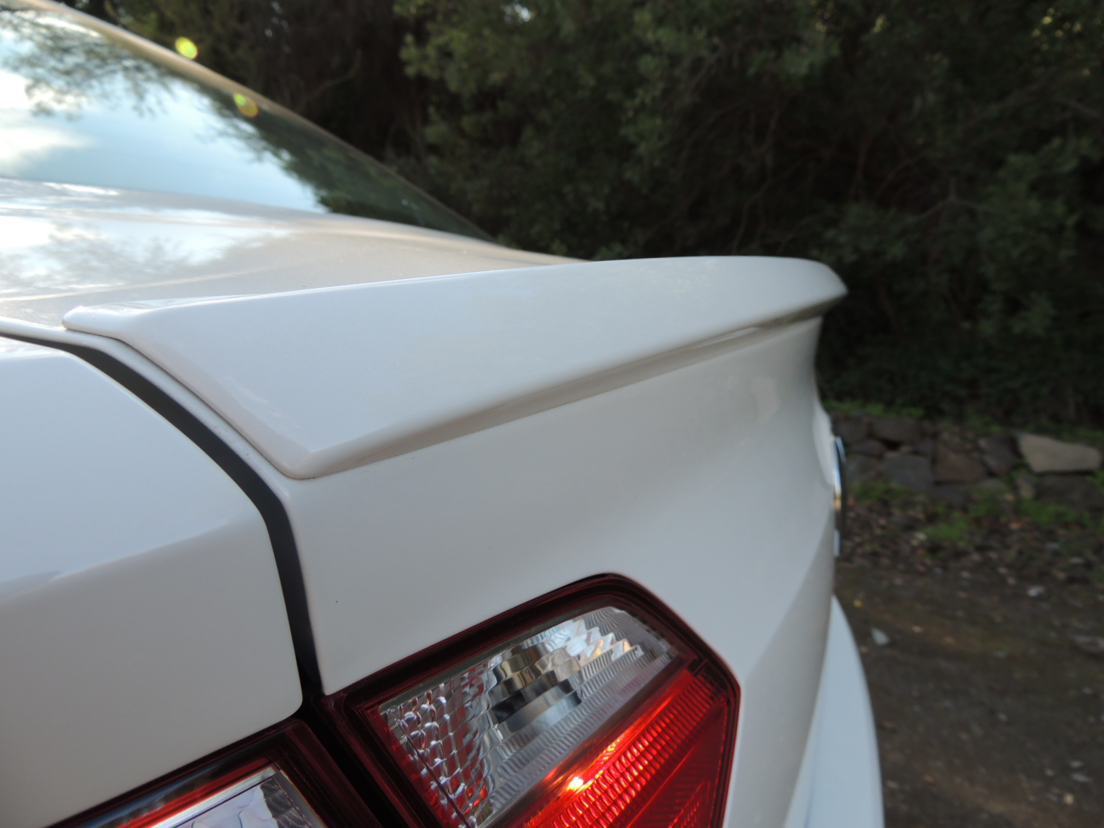 Seguimos viendo una línea ascendente que se funde con los ópticos posteriores para darle una sensación de mayor anchura. Los focos emplean el diseño tridimensional, señalado en la nota I relativa al Gol. Se adiciona un listón cromado que va situado en el borde inferior de la tapa del portamaletas. El parachoques luce más robusto.