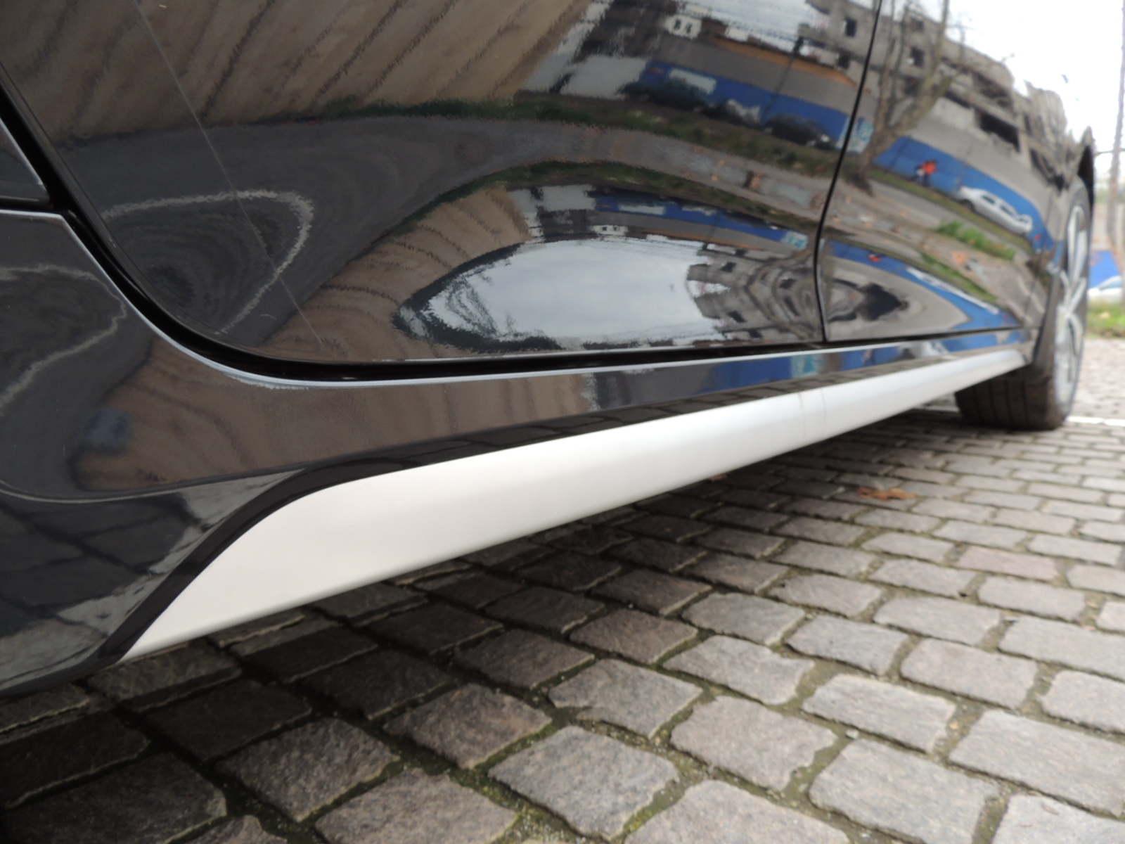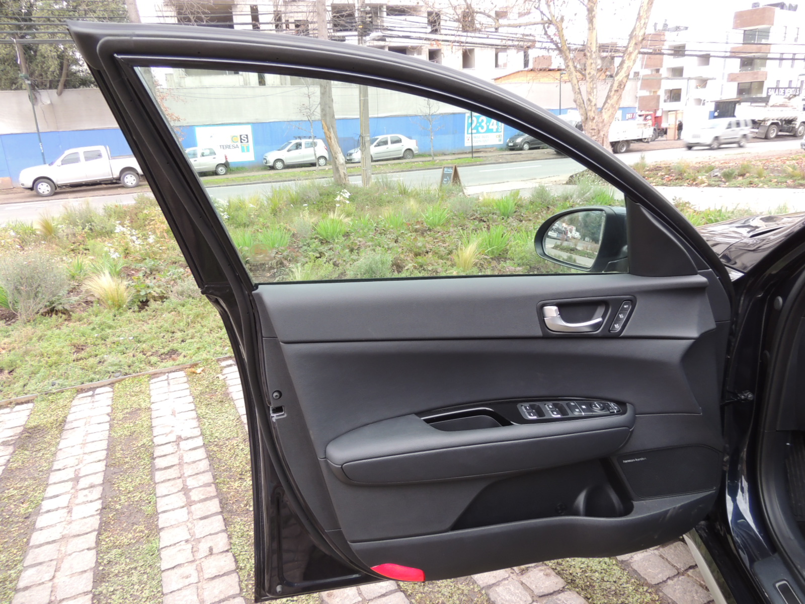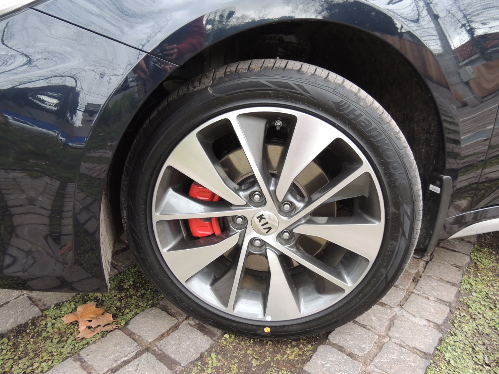 Lateralmente se reconoce por sus generosas llantas de aleación con cepillado metálico y calípers de frenos rojos, que calzan en neumáticos Hankook de medida 235/45 R18. Un listón, también satinado en la misma tonalidad de los señalados en su proa, recorre la zona del zócalo del auto.