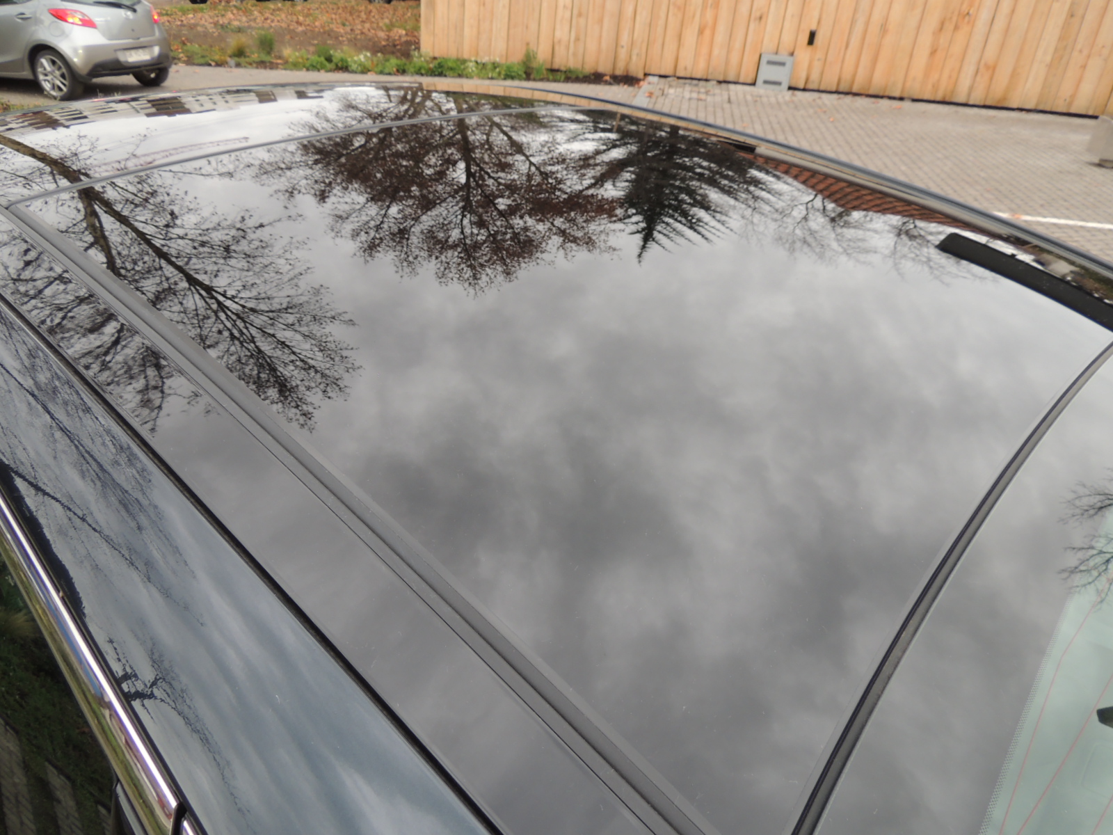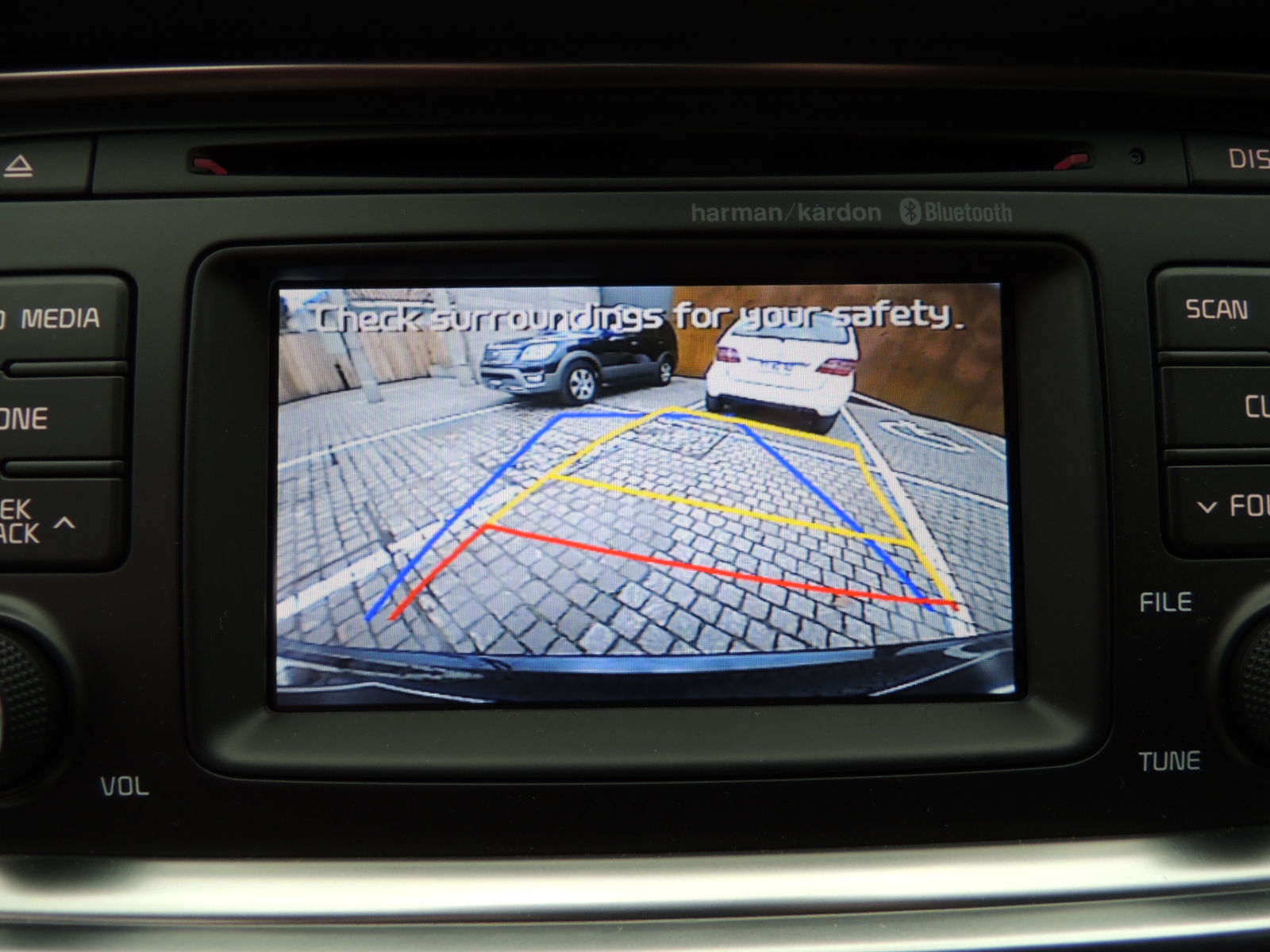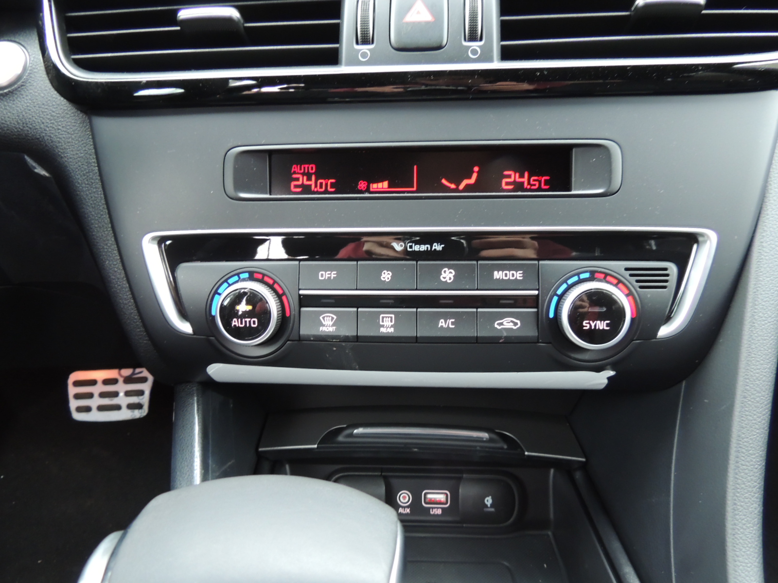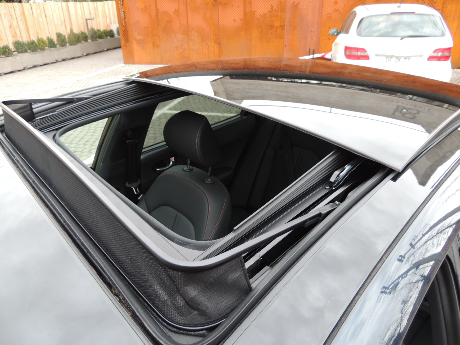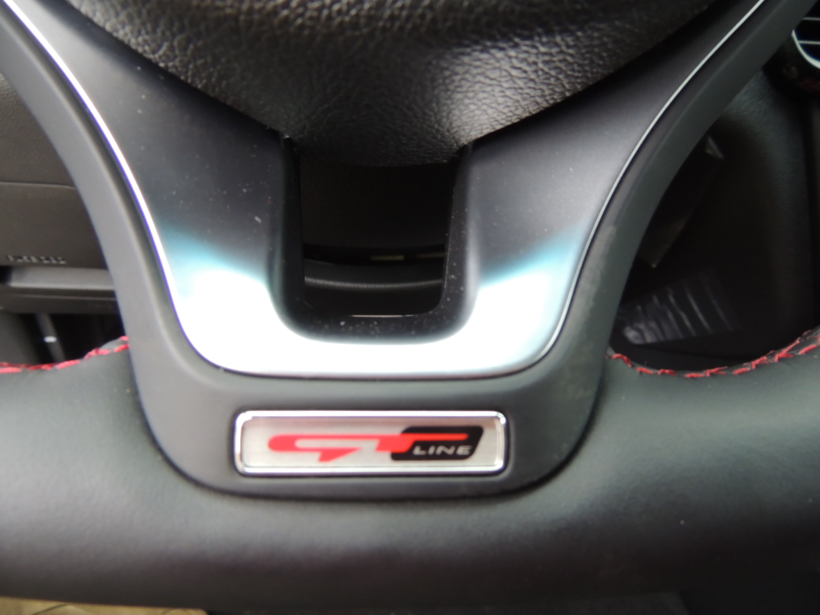 Interiormente encontramos un generoso techo panorámico, cuya sección delantero cuenta con deslizamiento eléctrico y función «Tilt», sumado a una serie de equipamientos de confort adicionales como son: tapiz de cuero en zonas de contacto y pespuntes rojos, nuevo volante con forma de D y el logo GT Line en su brazo inferior, asiento del conductor con ajuste eléctrico y dos memorias, sistema de audio con reproductor de CD/MP3/USB/Aux Harman Kardon con 10 altavoces y un subwoofer de 8″ con amplificador, además de pantalla de 5″ a color táctil, la que a s vez permite visualizar la cámara de retroceso al engranar la reversa en la palanca selectora, sistema de cargador inalámbrico para celulares en la consola central, persianas laterales en las puertas traseras, pedalera de aluminio y cuadro de instrumentos con computador de abordo a color LCD de 4,2″.