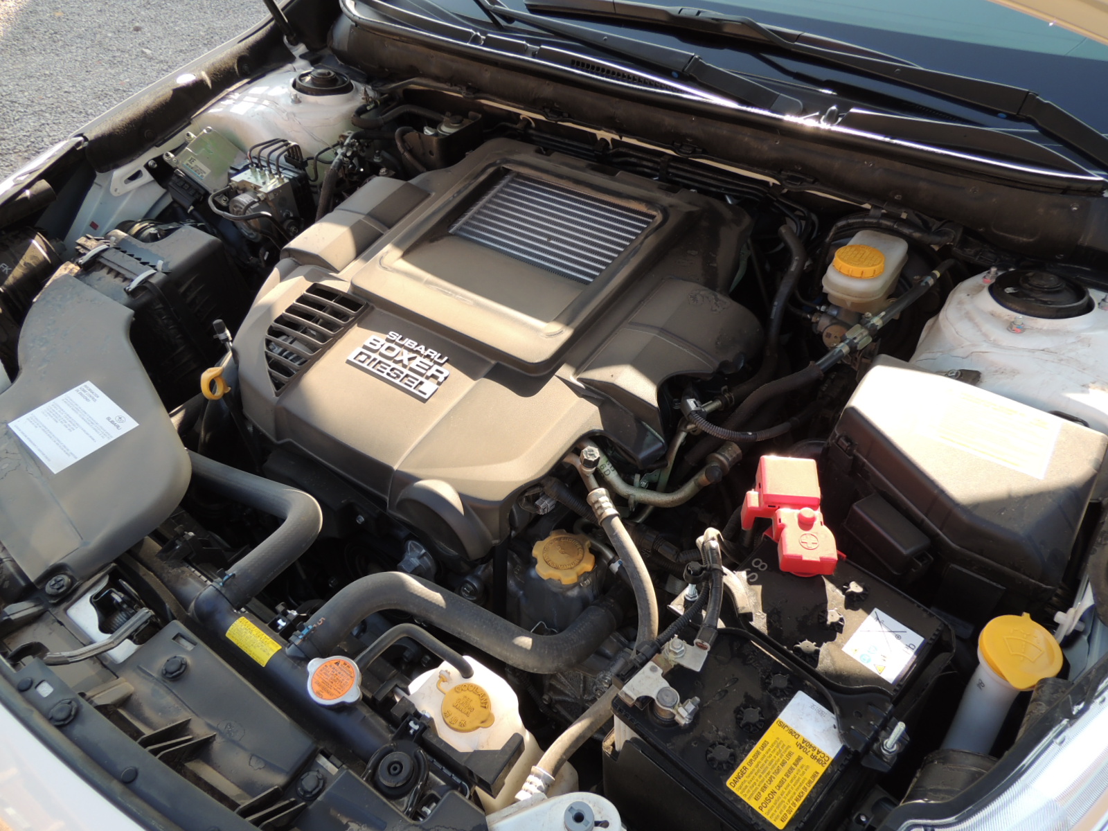 Mécanicamente es propulsada por un motor boxer turbodiesel (EE20) de 1.998 c.c. de desplazamiento, con cuatro cilindros y 16 válvulas DOHC, que tiene diferencias muy menores en cuanto a torque con el XV y Forester diesel. Entrega una potencia efectiva de 148 HP a 3.600 revoluciones y un par motor de 350Nm disponibles entre las 1.600 y 2.800 vueltas, asociado a una suave caja Lineartronic HCVT (adaptada al alto torque del motor), cuyos pasos de cambios los advertimos sutilmente, dándonos la sensación de estar manejando un auto con cambio automático tradicional (c0n convertidor de torque).