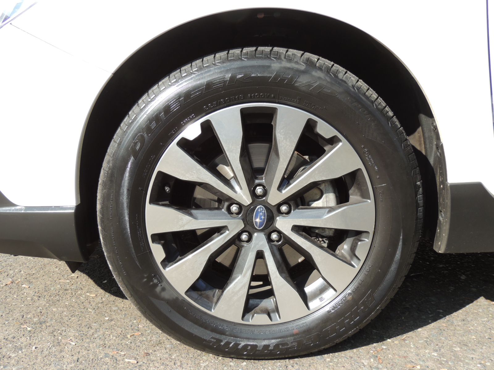 Lateralmente se reconoce como un Outback, lo que se aprecia en los gruesos contornos cromados que recorren el área de las ventanas. Los pasos de ruedas ensanchados y destacados con aplicaciones de resina negra, en este nuevo Outback lucen mucho más elegantes, haciendo lucir sus generosos neumáticos Bridgestone Dueller de medida 225/60 R18 con llantas de aleación bitono (metal/gris satinado), muy en el estilo de las presentes en el XV. Es destacable es suave andar que otorgan estos neumáticos, haciendo que pasar por lomos de toros o zonas con pavimento en mal estado sea un total agrado, puesto que absorbe las ireegularidades con comodidad y firmeza. La presencia de los vidrios laterales y posterior ahumados, son privativos de los acabados Premium y Limited.