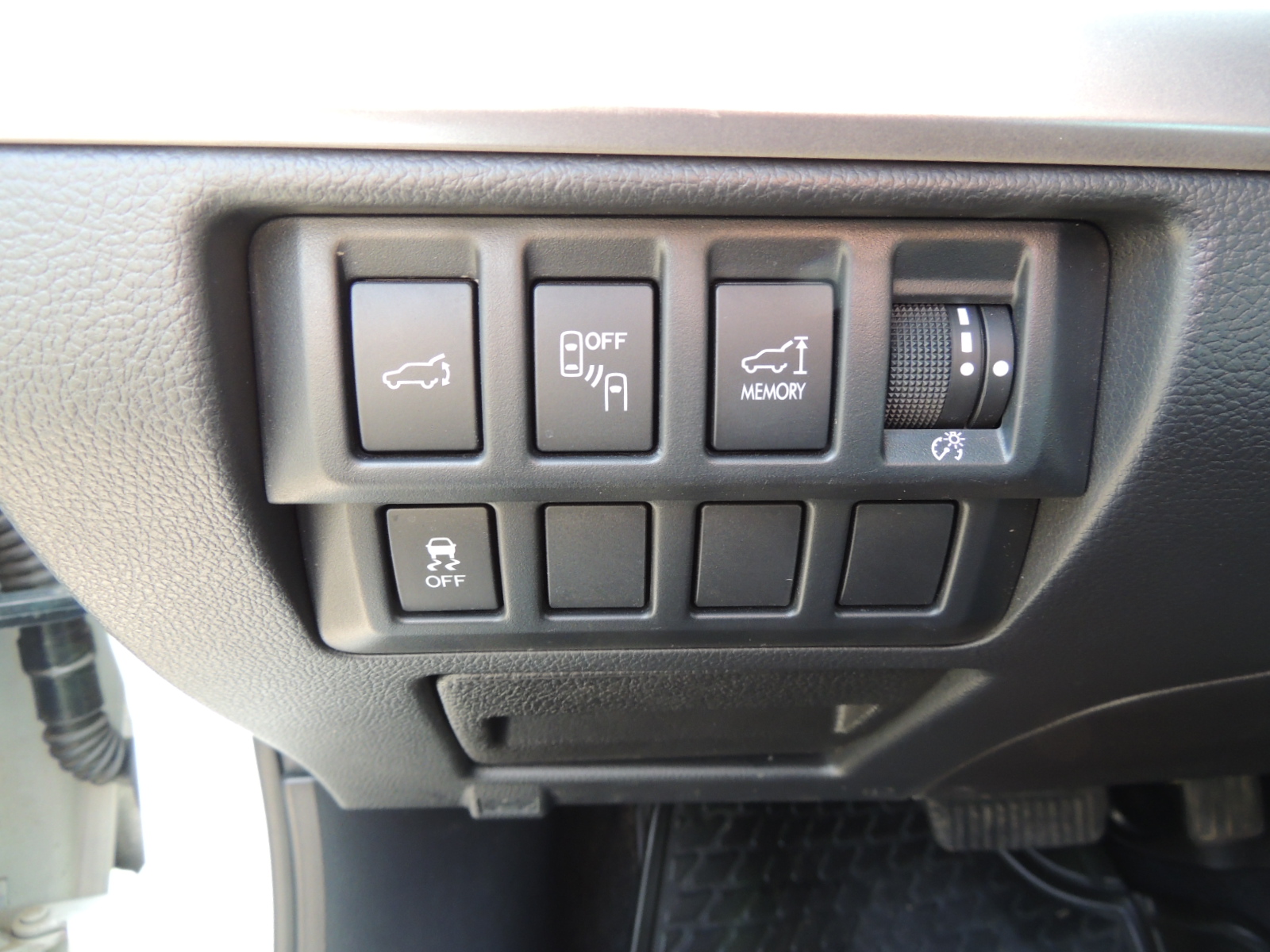 Al costado derecho inferior encontramos una serie de pulsadores que controlan la apertura eléctrica del portalón trasero, desconexión del sistema de punto ciego, sistema de memoria para regular la altura de apertura del portalón, reóstato de luces del tablero y desconexión (parcial) del control de estabilidad.