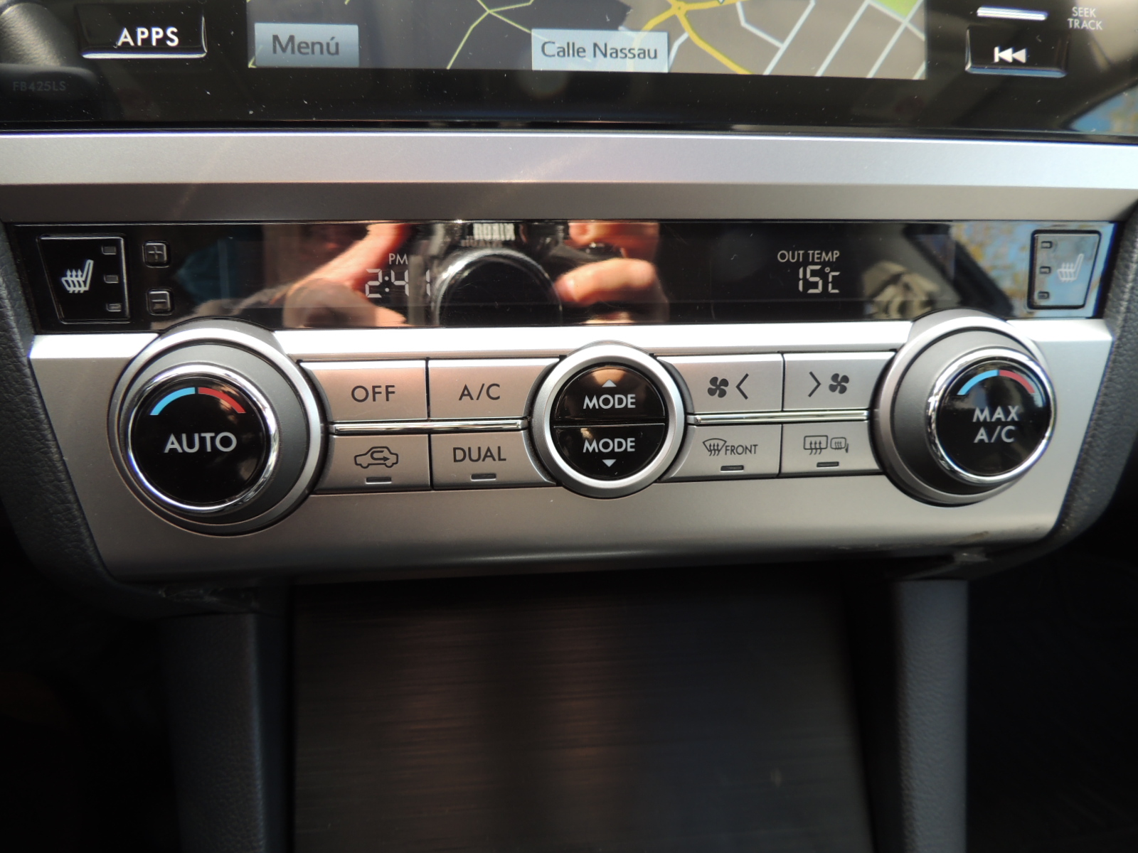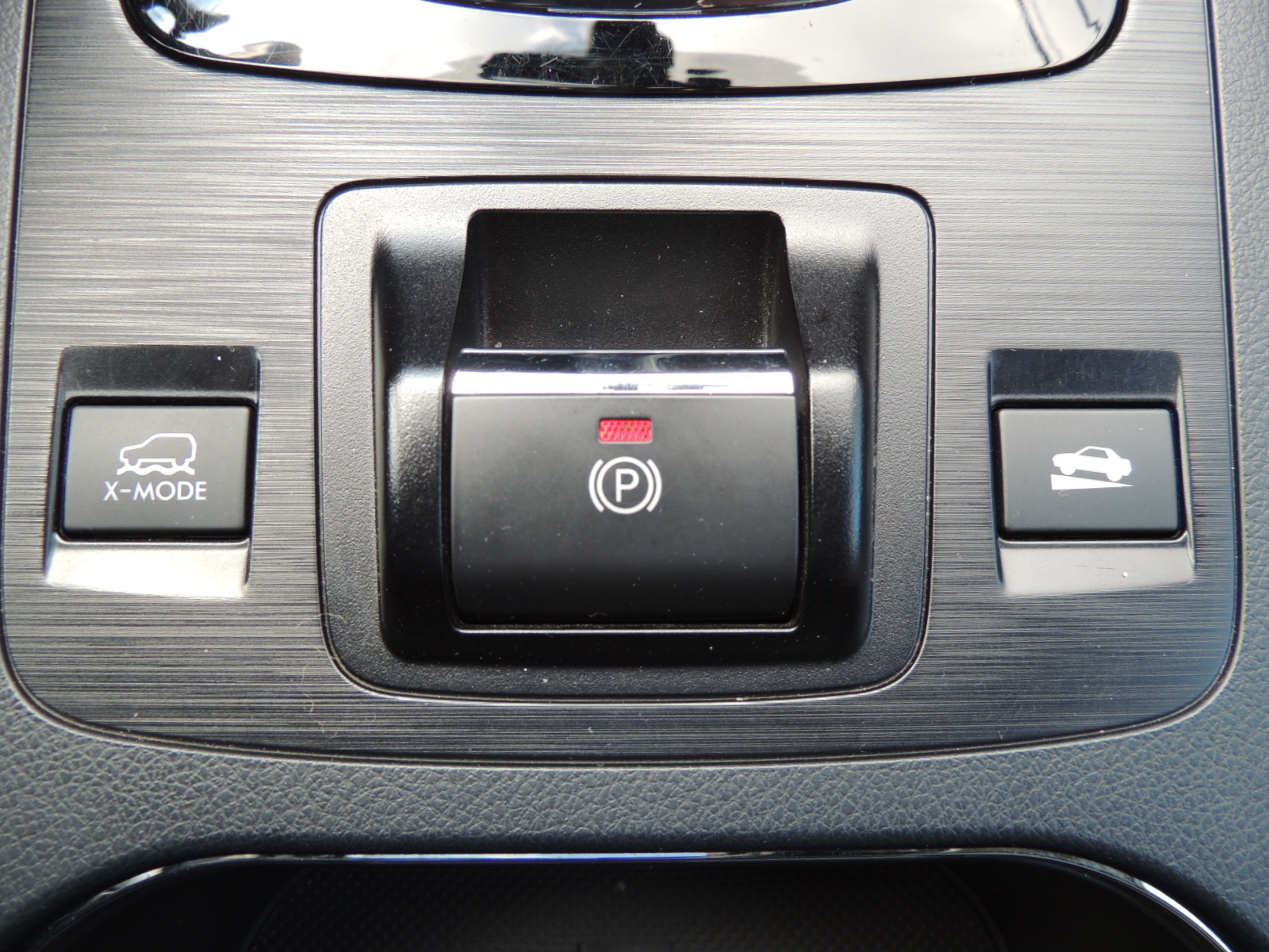 Inmediatamente tras la palanca encontramos una tríada de comandos claves: el primero que comanda el sistema X-Mode, que gestiona el motor, transmisión, SAWD y frenos para circular por zonas de caminos complejos con total seguridad. Cumple dos funciones: control de descenso en bajadas con ayuda del control crucero, que funciona en todo tipo de superficies, siempre que se mantenga una velocidad de hasta 20 km/h y no es necesario aplicar los frenos. La segunda es como control antipatinaje, operando hasta velocidades de 40km/h, otorgando tracción a las ruedas que no están patinando o en el aire. El segundo corresponde al del accionamiento eléctrico del freno de estacionamiento, mientras que el tercero alude al sistema de asistencia en pendiente, que permite enfrentar descensos pronunciados (siempre con el criterio del conductor), pudiendo bajar pendientes a baja velocidad sin tocar el acelerador ni freno.