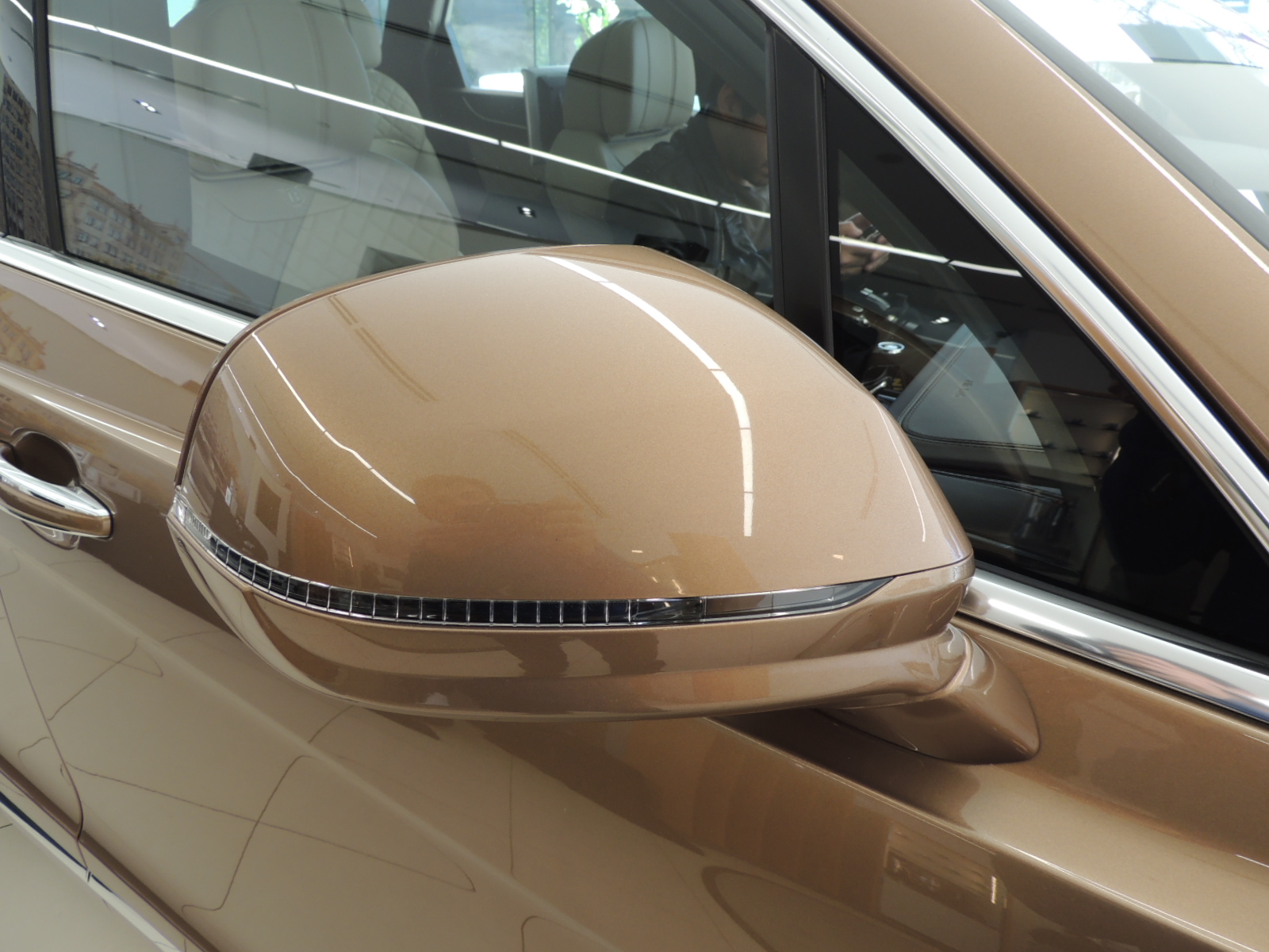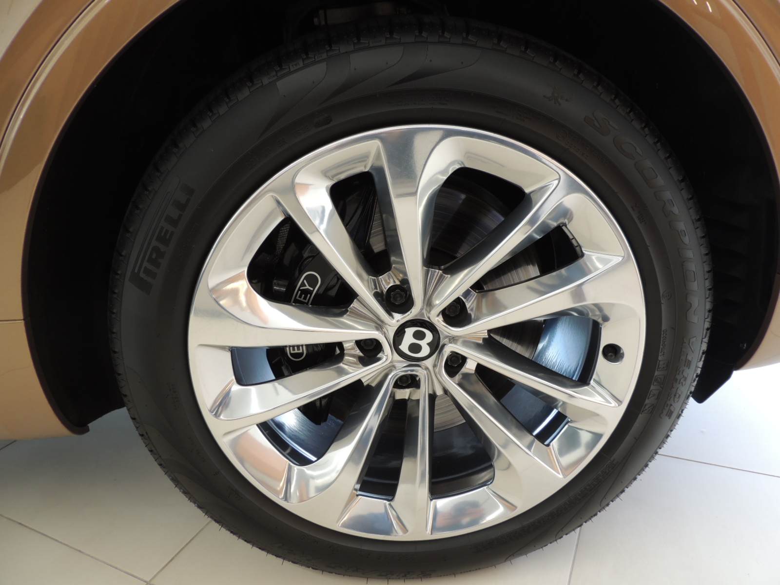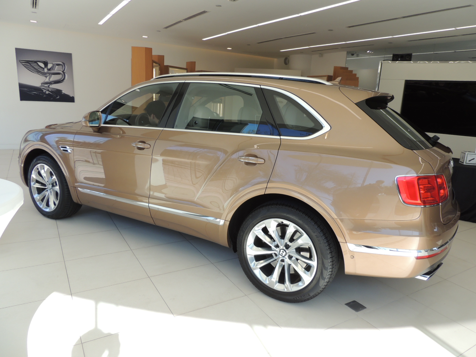 Lateralmente luce como un SUV de grandes dimensiones con pasos de ruedas, guardabarros y un capó que aportan el equilibrio perfecto entre el carácter deportivo y la presencia de un SUV de fina estampa, mientras que sus robustas caderas en la sección posterior denotan volumen y presencia en el perfil lateral de mayor altura. Los espejos, a pesar de tener forma tipo banderín, complementan perfectamente el Bentayga, con luces de cortesía y repetidores de los intermitentes integrados en su carcasa.