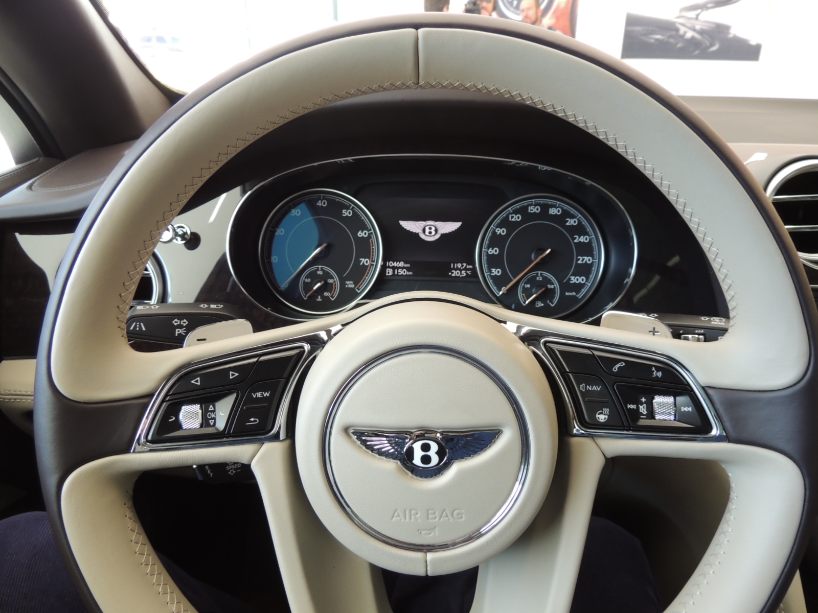 Según lo que apreciamos en la unidad estacionaria, esta versión viene con lo que Bentley denomina Mulliner Driving Specification que incorpora elementos como: llantas aro 21, revestimientos internos de las puertas y asientos acolchados con motivos con forma de rombo, el emblema de Bentley bordado en todos los asientos y pedalera deportiva perforada.