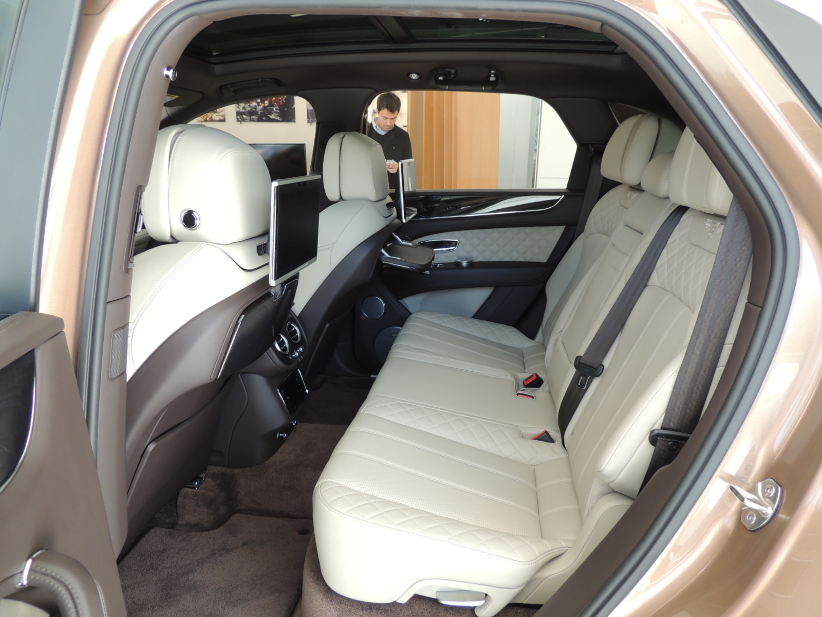Basta con abrir cualquier puerta del Bentayga para experimentar una experiencia de lujo superlativo. Su habitáculo fue elaborado a partir de un sencillo concepto: las icónicas alas de su logo, por lo que el diseño de la cabina convierte el diseño del emblema en una ala doble que fluye de puerta a puerta.