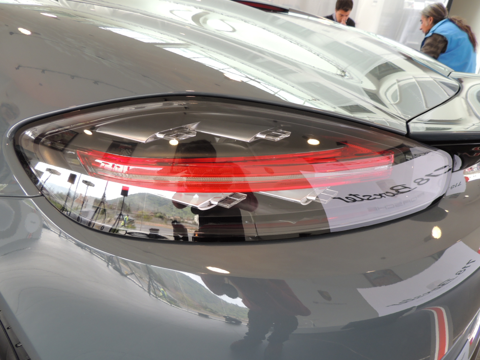 La rediseñada parte trasera del 718 Boxster tiene una apariencia mucho más ancha, especialmente por la franja en negro brillante con el logotipo integrado de Porsche entre las dos luces en cristal transparente. Estas ópticas posteriores se han retocado completamente y se distinguen por la tecnología LED tridimensional y los cuatro puntos de luz de freno.