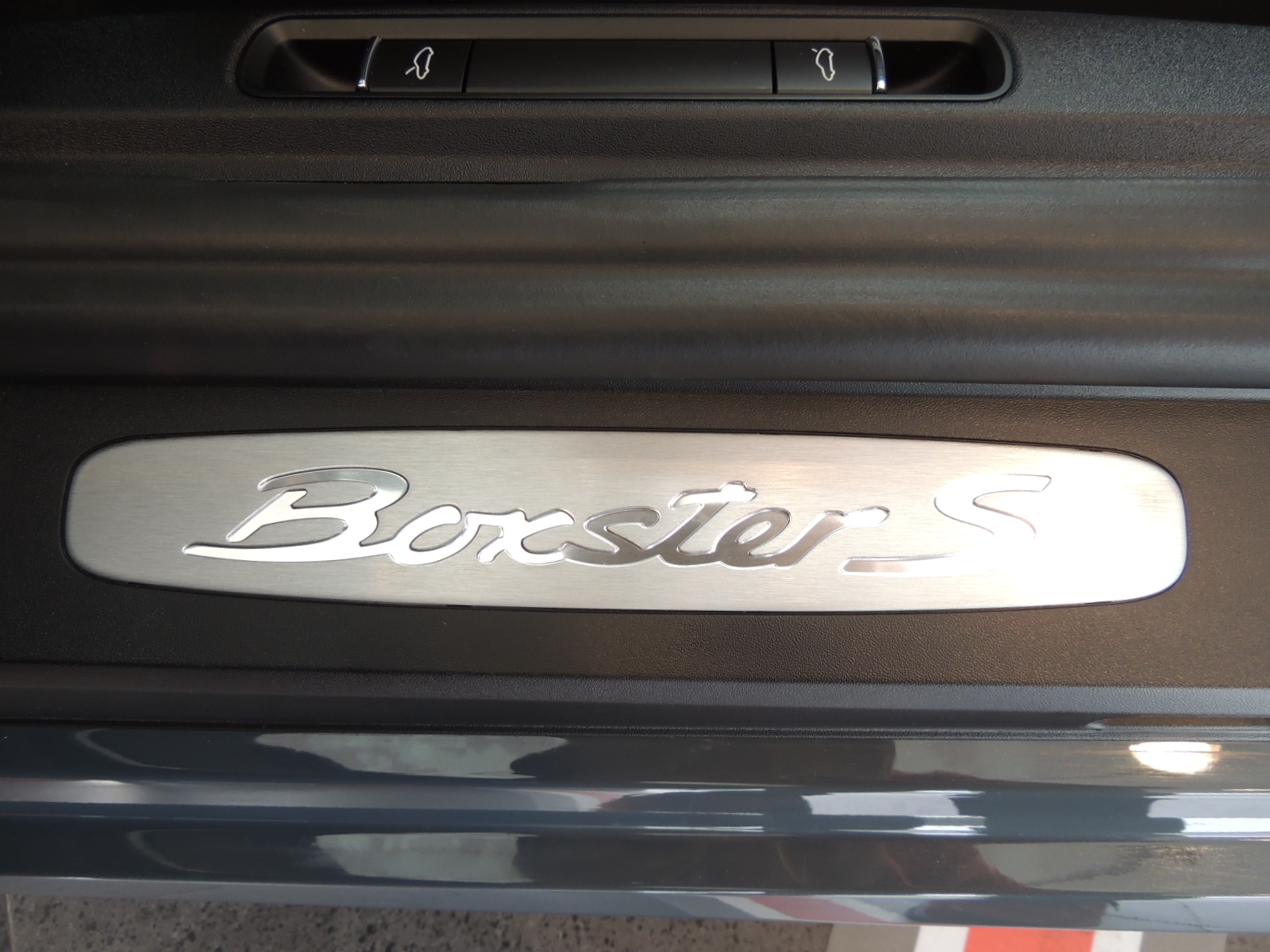 Desde una perspectiva lateral, el modelo se identifica por las formas de sus aletas y faldones. Unas tomas de aire más grandes y divididas por láminas que optimizan el suministro de aire, resaltan el aspecto dinámico del auto. Las puertas se han diseñado con las manillas integradas en la carrocería. Espejos laterales con montantes en forma de V, además de los rediseñados umbrales inferiores de las puertas. El Boxster calza neumáticos Pirelli PZero de medida 235/40 ZR19, mientras que el Boxster S calza Pirelli PZero de medida 235/35 ZR20
