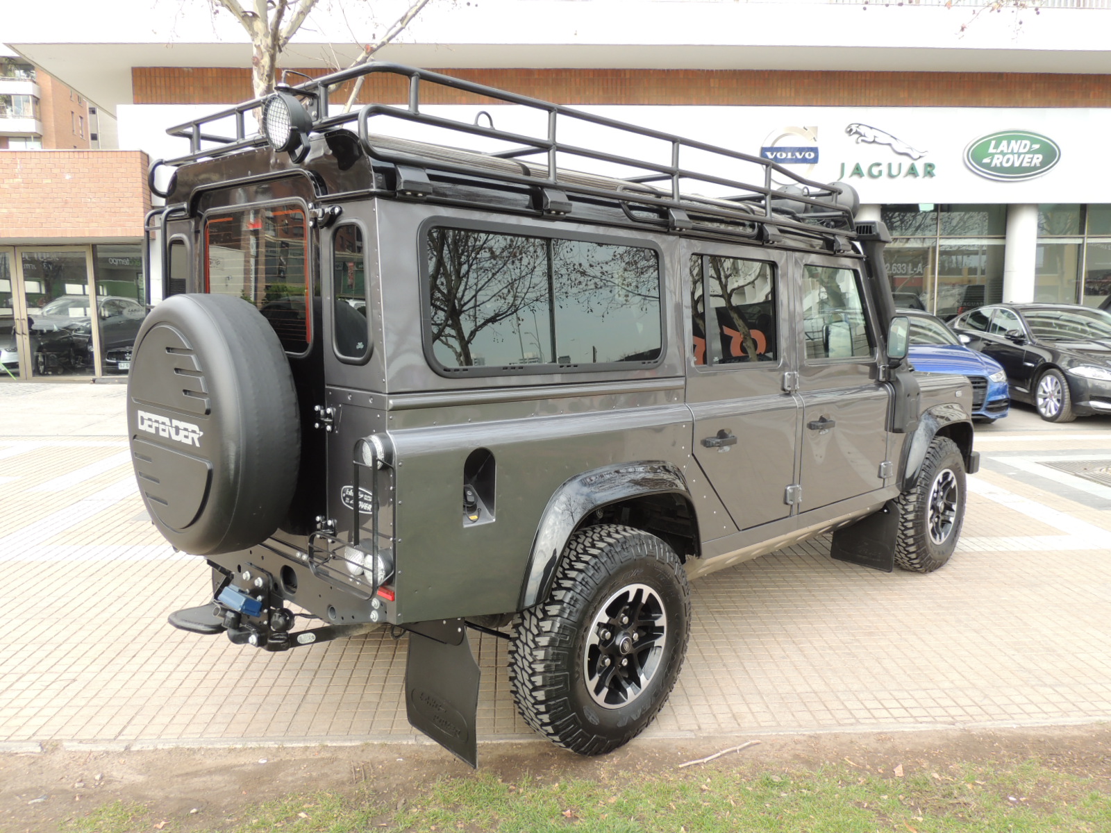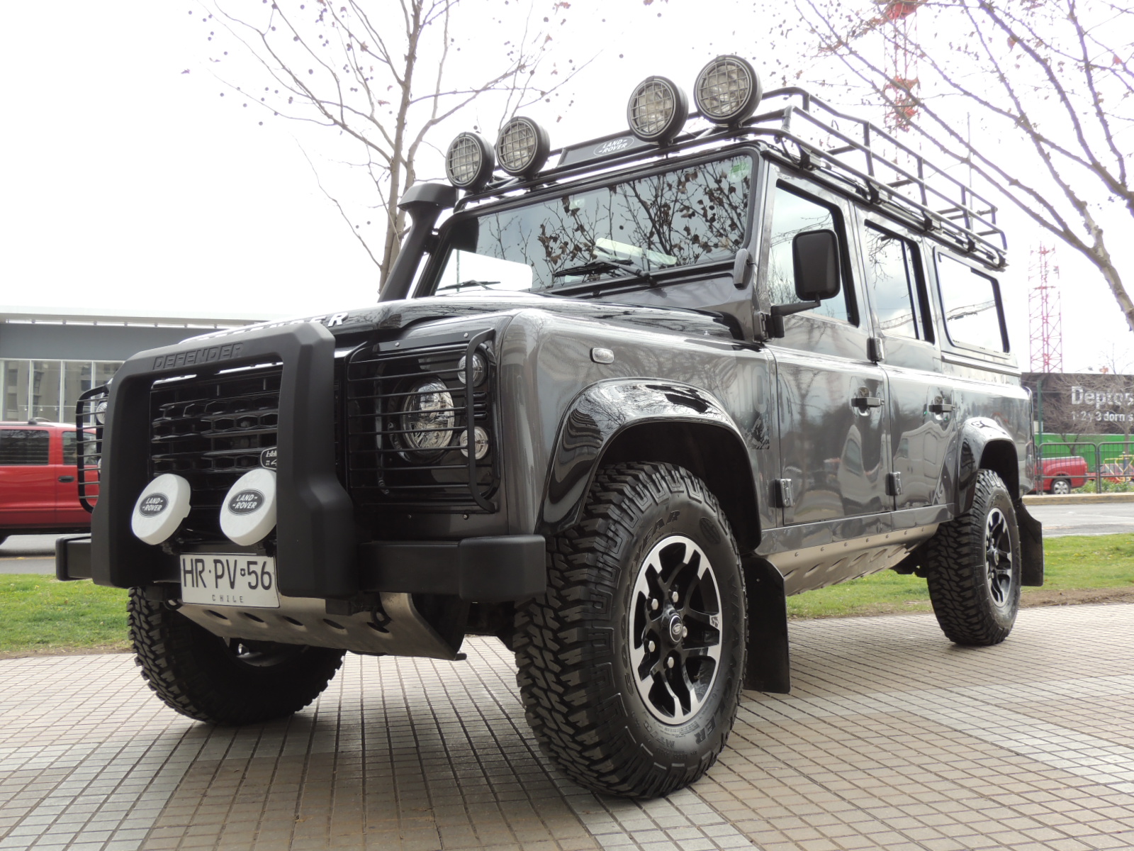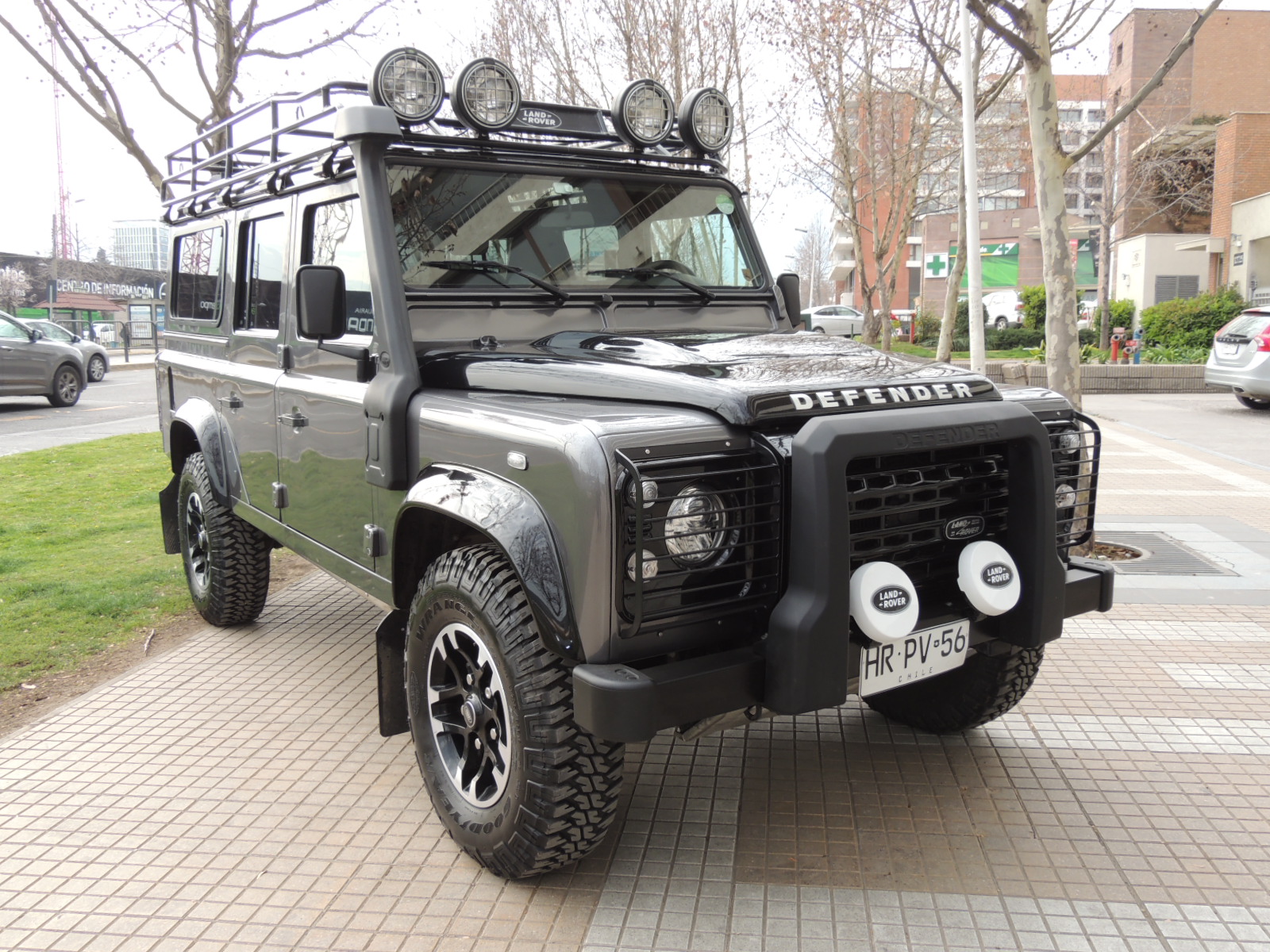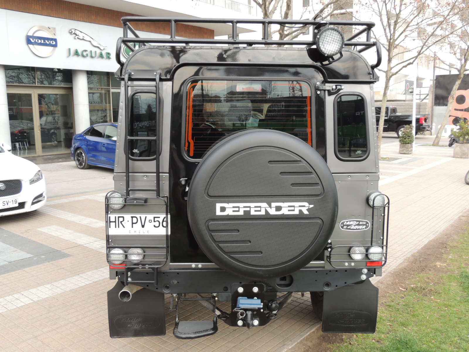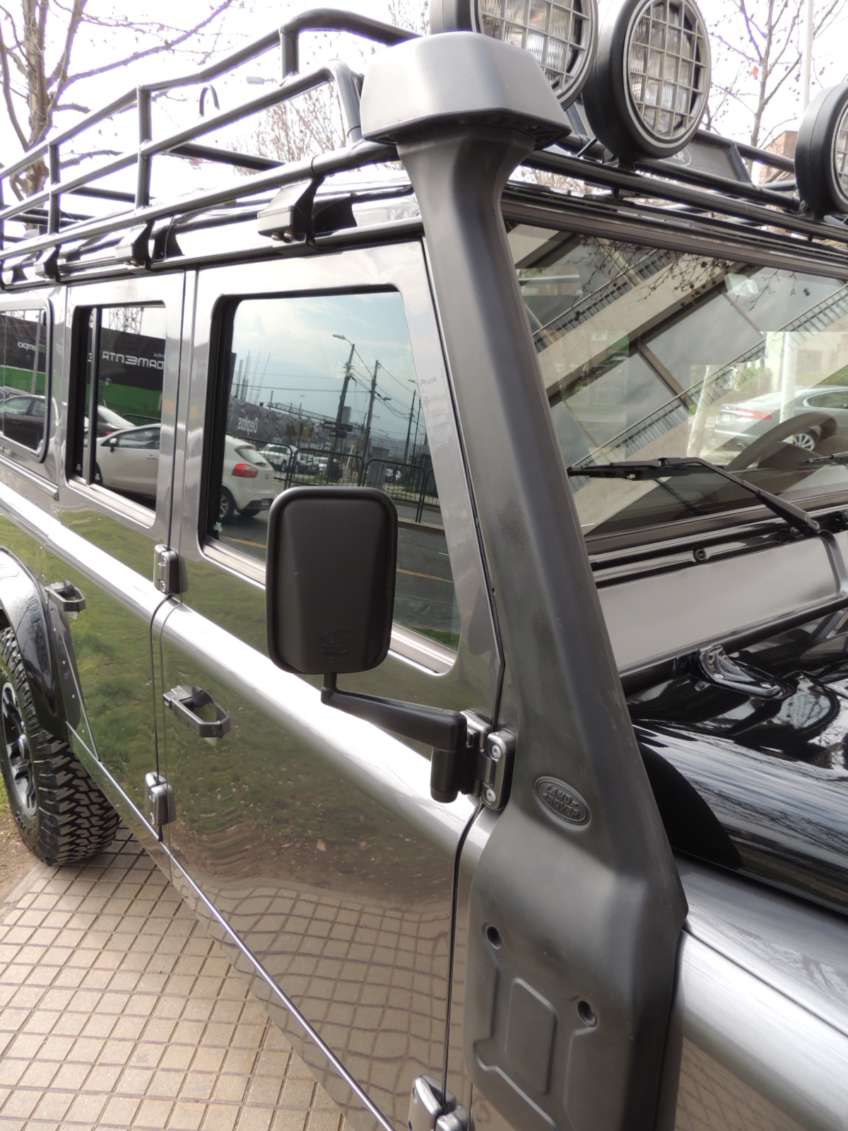 Los faros delanteros con proyector LED de siete pulgadas, los indicadores frontales transparentes y las llantas de aleación de radio doble y pulido a espejo Gloss Black distinguen al modelo, inspirado en las expediciones. Los alerones frontales cuentan con etiquetas adhesivas de los modelos 90 y 110. Además, mantiene el Rack Defender sobre el techo, snorkel y acceso posterior a la parrilla de techo mediante escala.