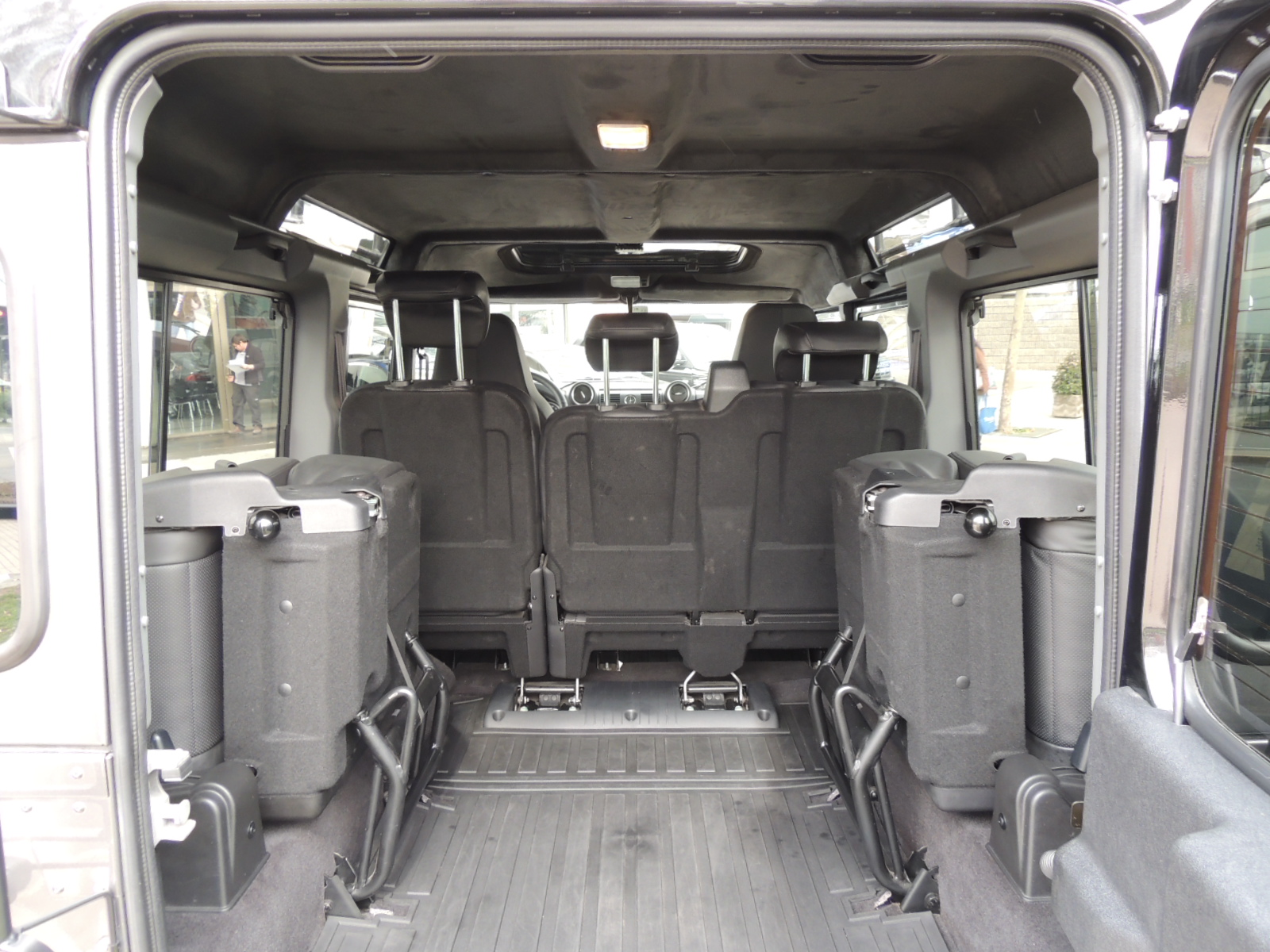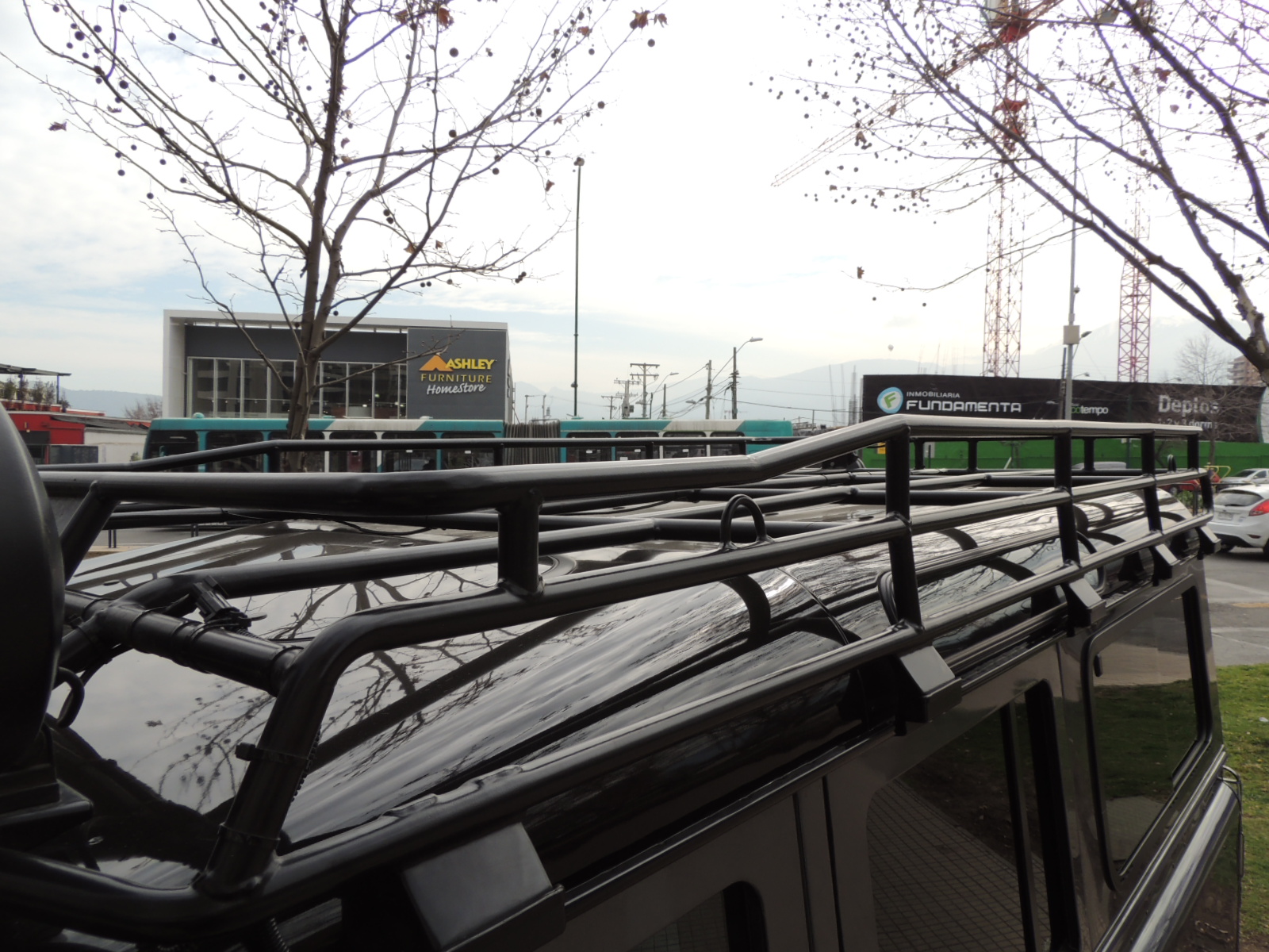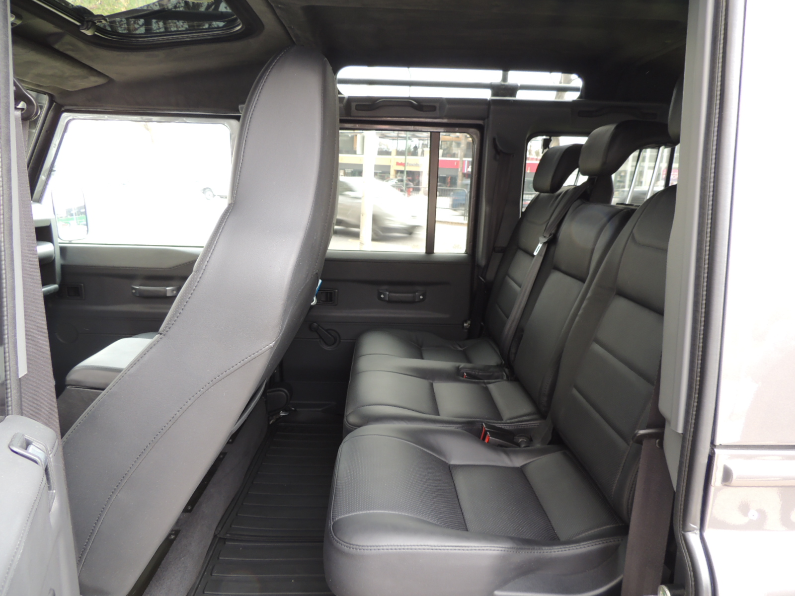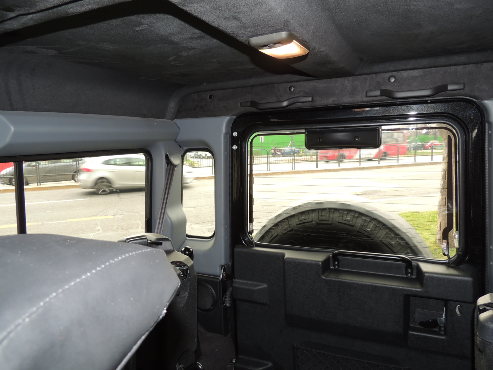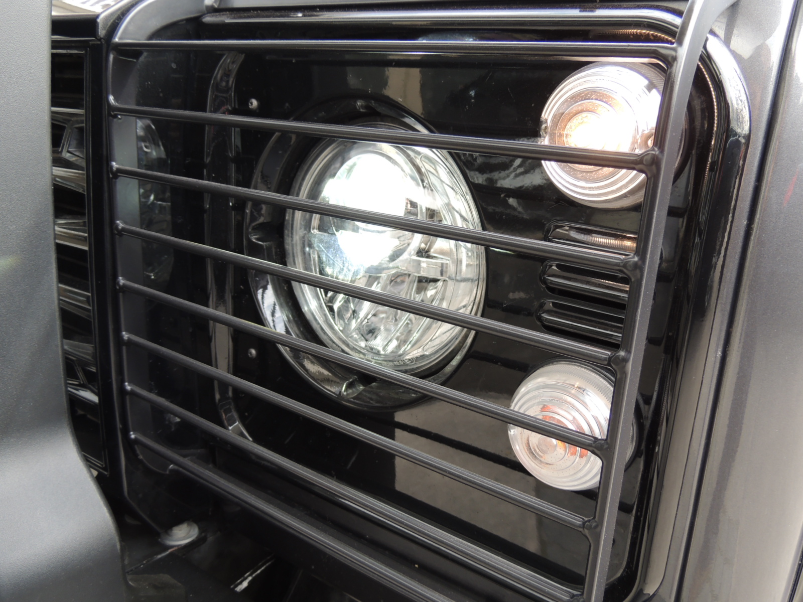 Los faros delanteros con proyector LED de siete pulgadas, los indicadores frontales transparentes y las llantas de aleación de radio doble y pulido a espejo Gloss Black distinguen al modelo, inspirado en las expediciones. Los alerones frontales cuentan con etiquetas adhesivas de los modelos 90 y 110. Además, mantiene el Rack Defender sobre el techo, snorkel y acceso posterior a la parrilla de techo mediante escala.