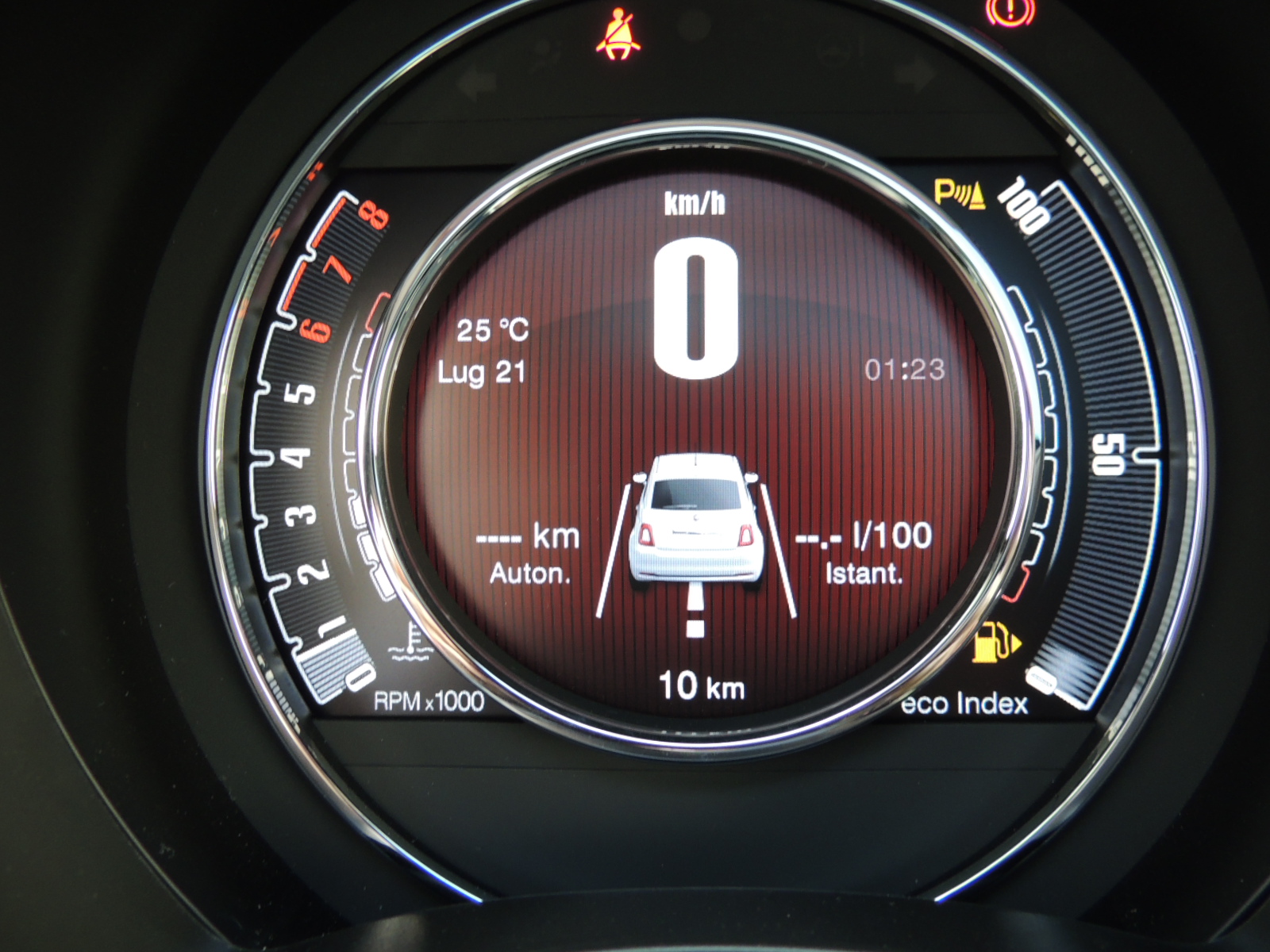Pero sin duda que es la pantalla TFT LCD de 7″, desarrollada en conjunto con la empresa Magneti Marelli, especializada en la fabricación de componentes de alta tecnología, la que de seguro llamará la atención del conductor, puesto que muestra una imagen del auto, además de brindar información acerca de parámetros claves, como son: