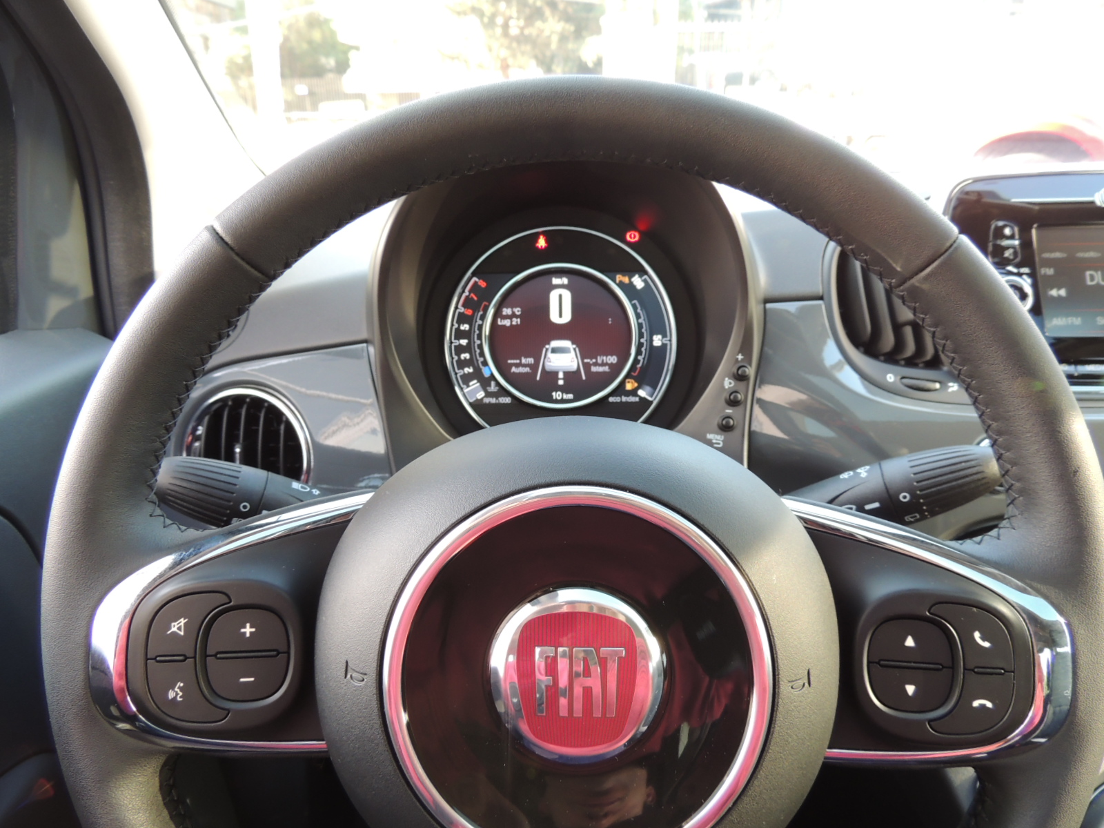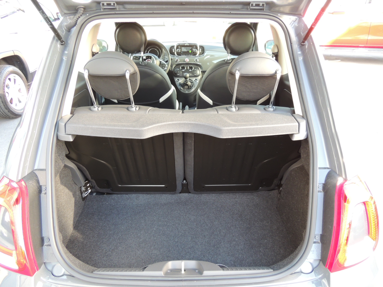 Más abajo, mantiene la generosa manilla cromada, que hace las veces de cubre placa patente, que es un guiño al primer del portaluces del 500 de 1957. Nuevo es el diseño de sus luces traseras, que emplean una estrctura luminosa anular, que según FIAT deja «transpirar» en medio del color de la carrocería. En resumen, el contorno de los ópticos envuelve una zona de la carrocería que queda expuesta dentro de la misma luz. Demás está señalar que emplea tecnología de diodos luminosos.