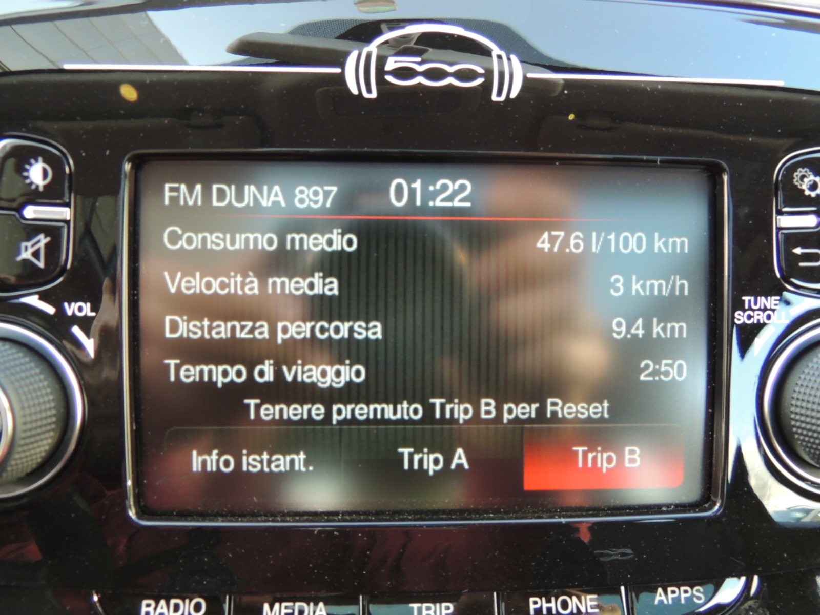 La consola central, donde va el sistema de audio se inserta dentro de una suerte de rectángulo con bordes suavizados y cromados, en una elegante terminación en negro brillante. Aún siendo operable de manera táctil, dispone de botonera para regular la brillantez de la pantalla, anular el volumen, configuración del sistema. A ambos lados hay dos botones circulares que controlan el encendido/apagado/volumen y la búsqueda de menús o estaciones de radioemisoras.