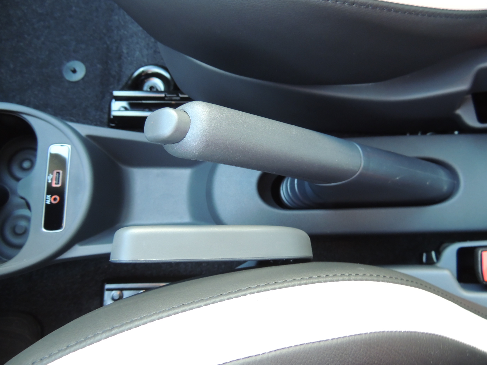 Luego, situada entre ambos comandos de los alzavidrios, va la palanca de cambios, en una postura alta, que resulta más alcance de la mano.