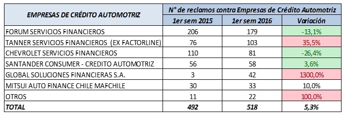El organismo señala que en dicho período recepcionó 3.251 quejas, concentrándose un 55,9% de ellos en automotoras y concesionarios de autos, seguidos por los operadores de autopistas con un 28,9%, y más atrás las empresas que brindan servicios de créditos automotrices.