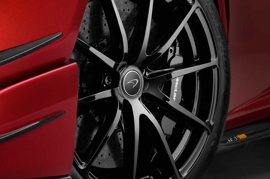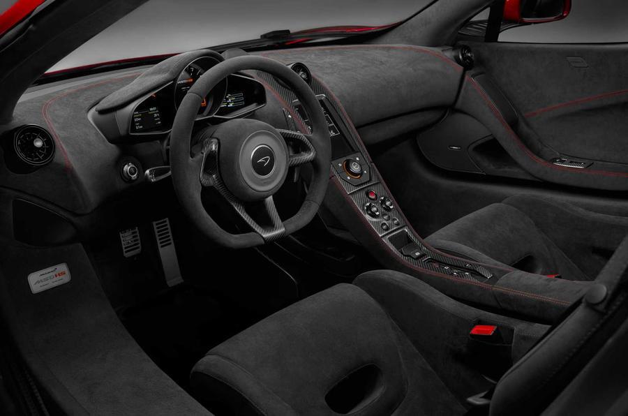 Otros elementos destacables de su habitáculo son el reemplazo de la tapicería de cuero por alcántara, empleo de fibra de carbono en sus asientos de serie, además del recambio de sus ventanillas laterales por unas con cristales más delgados, todo con la finalidad de alivianar el peso del auto. Las llantas de aleación tienen un nuevo diseño, y ocultan frenos de discos cerámicos.