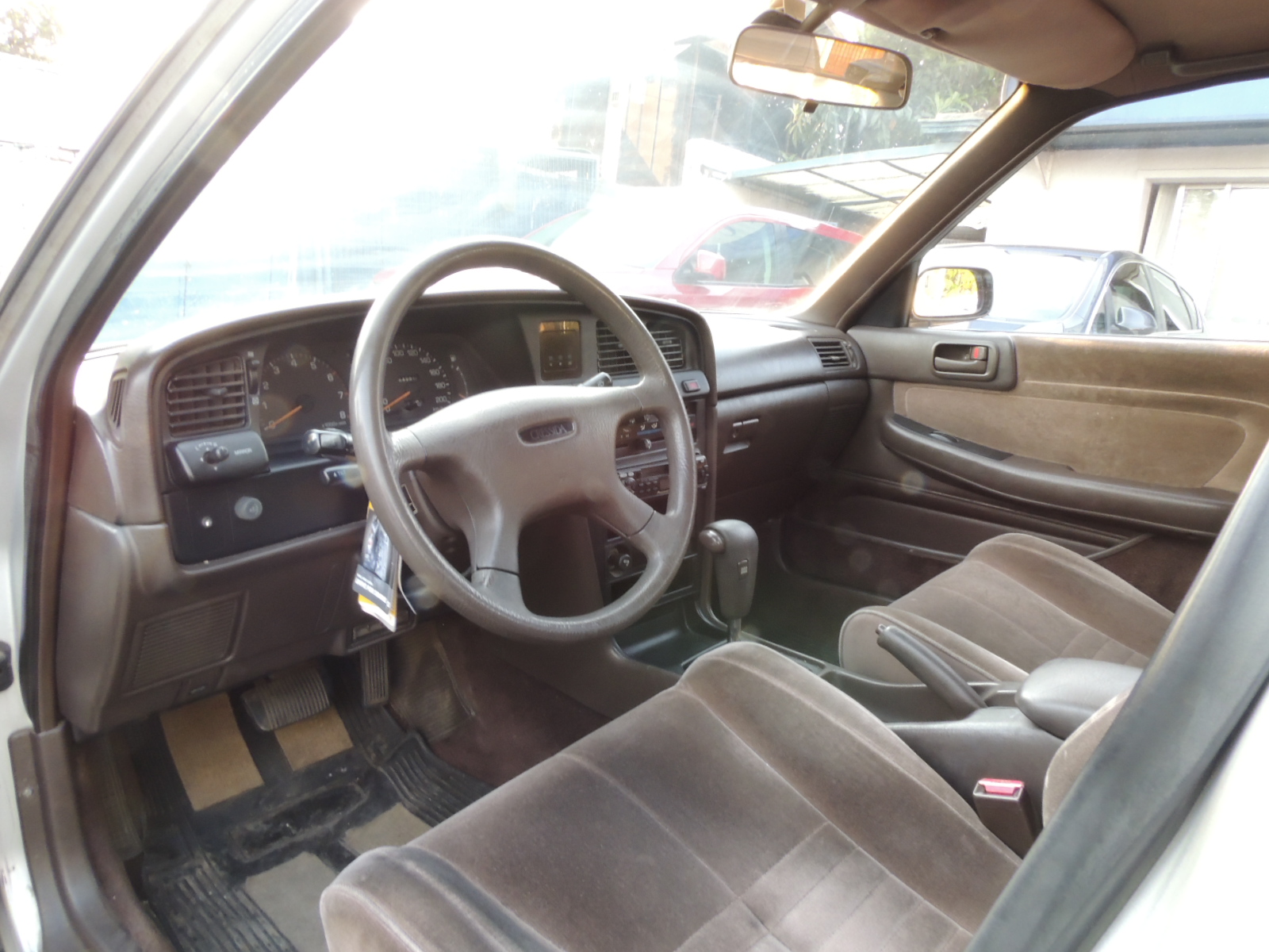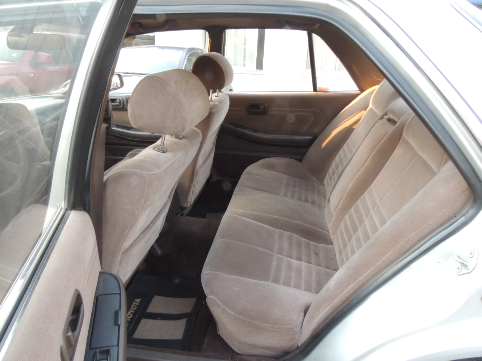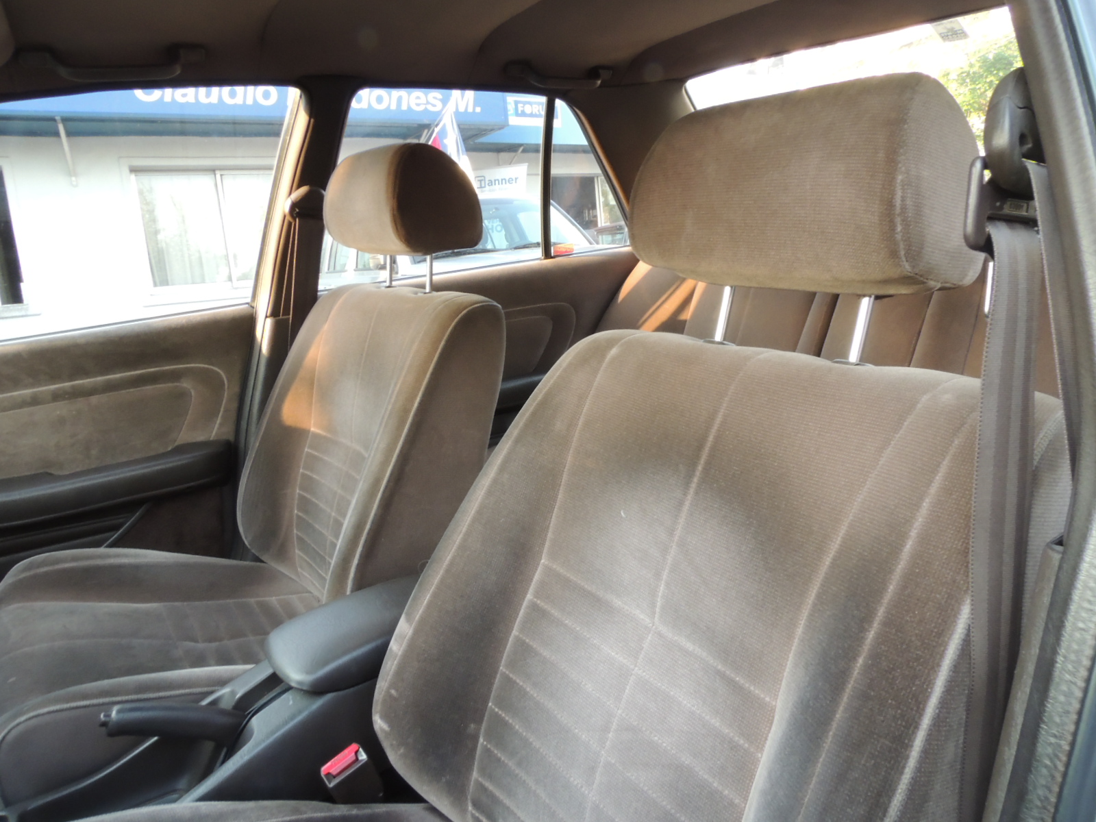 Pero lo más interesante se da al abrir la puerta del conductor, donde inmediatamente nos damos cuenta que no estamos en presencia de un Toyota cualquiera: la presencia del tapizado de felpa es abismante en los asientos y revestimientos interNos de las puertas, de color café claro en la versión que ilustra esta crónica. Los asientos son bastante mullidos y se ajustan perfectamente a nuestro cuerpo. Los delanteros eran regulables longitudinalmente, reclinables y en altura. La sensación de control es total, por cuanto todos los mandos están al alcance de la mano y son fácilmente reconocibles. El volante es de cuatro rayos con una palanca adicional, un tanto incómoda en su ubicación para regular la altura (personalmente prefiero la que tiene el Corolla de ese año). El comando para regular los espejos es una perilla situada al costado izquierdo del tablero, bajo la rejilla de ventilación. En esa misma zona está el regulador de intensidad de luz del tablero o reóstato.