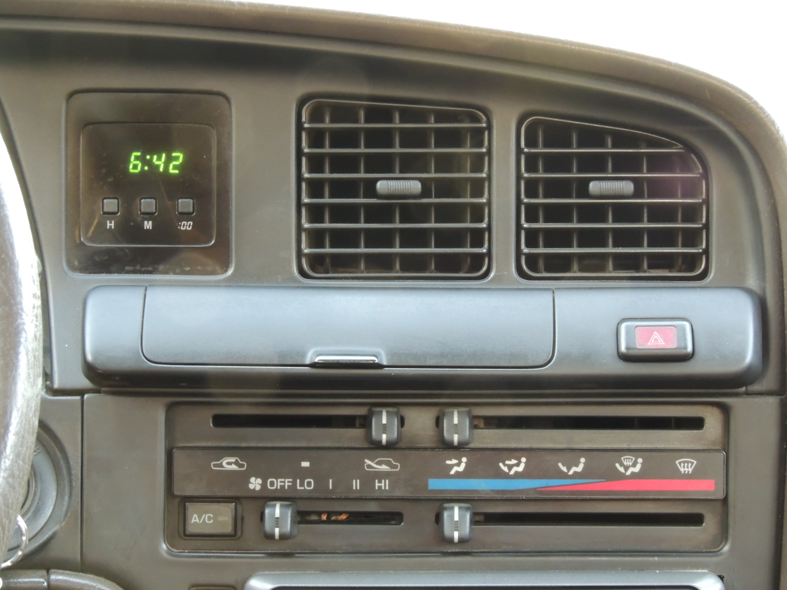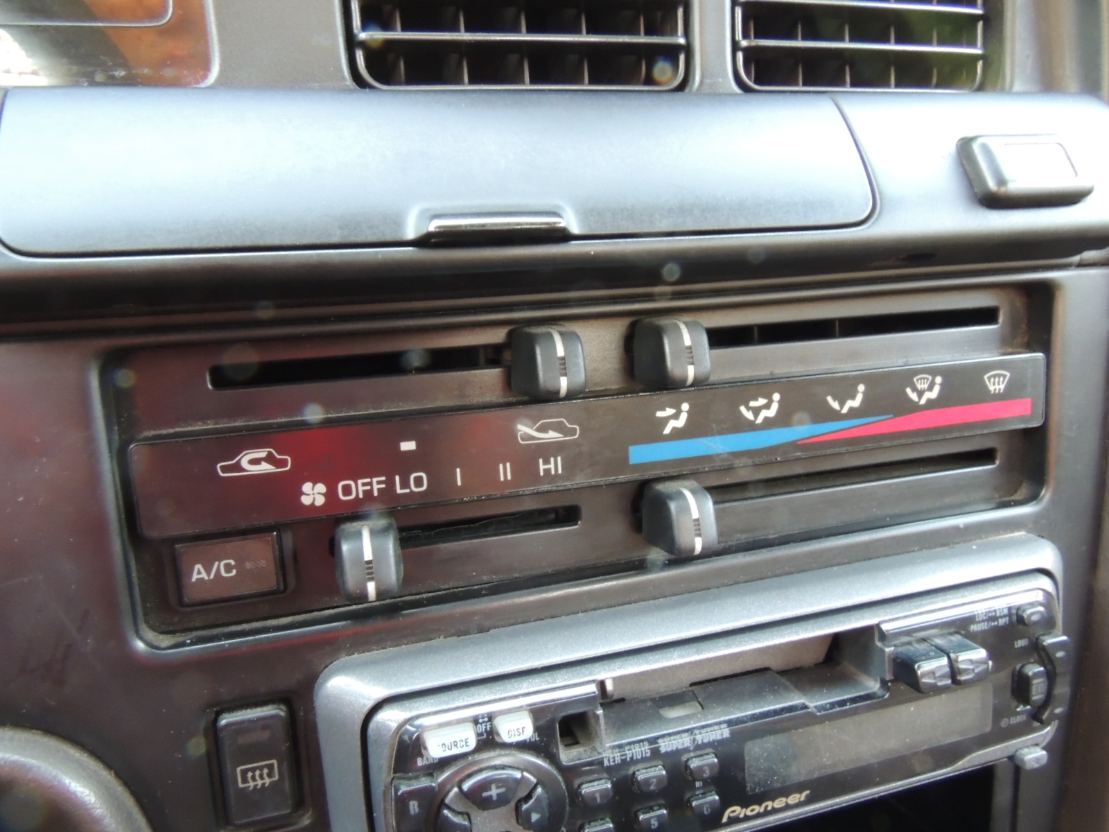 Inmediatamente debajo encontramos los comandos del sistema de climatización con cuatro palancas e interruptor de accionamiento del sistema de aire acondicionado manual. Desconozco que radio traía de fábrica o instalada «After Market», pero sospecho que pudo ser una Kenwood. (Este ejemplar tiene una Pioneer desmontable.). Luego encontramos el cenicero y el consabido encendedor.